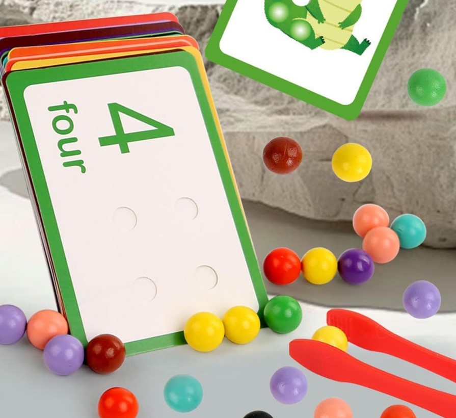 Cardurile numerice permit exersarea noțiunilor de bază de matematică prin plasarea bilelor în funcție de cifra afișată.