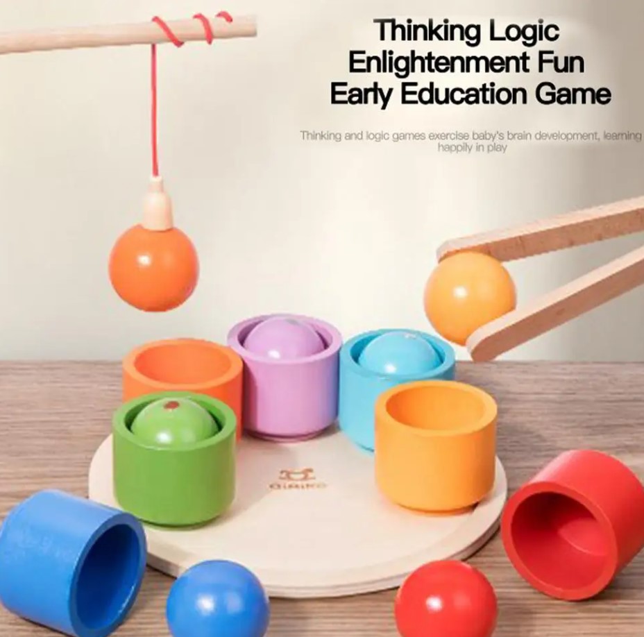 ✔ Conținut set: 7 cupe, 7 bile, pensetă din lemn, undiță magnetică