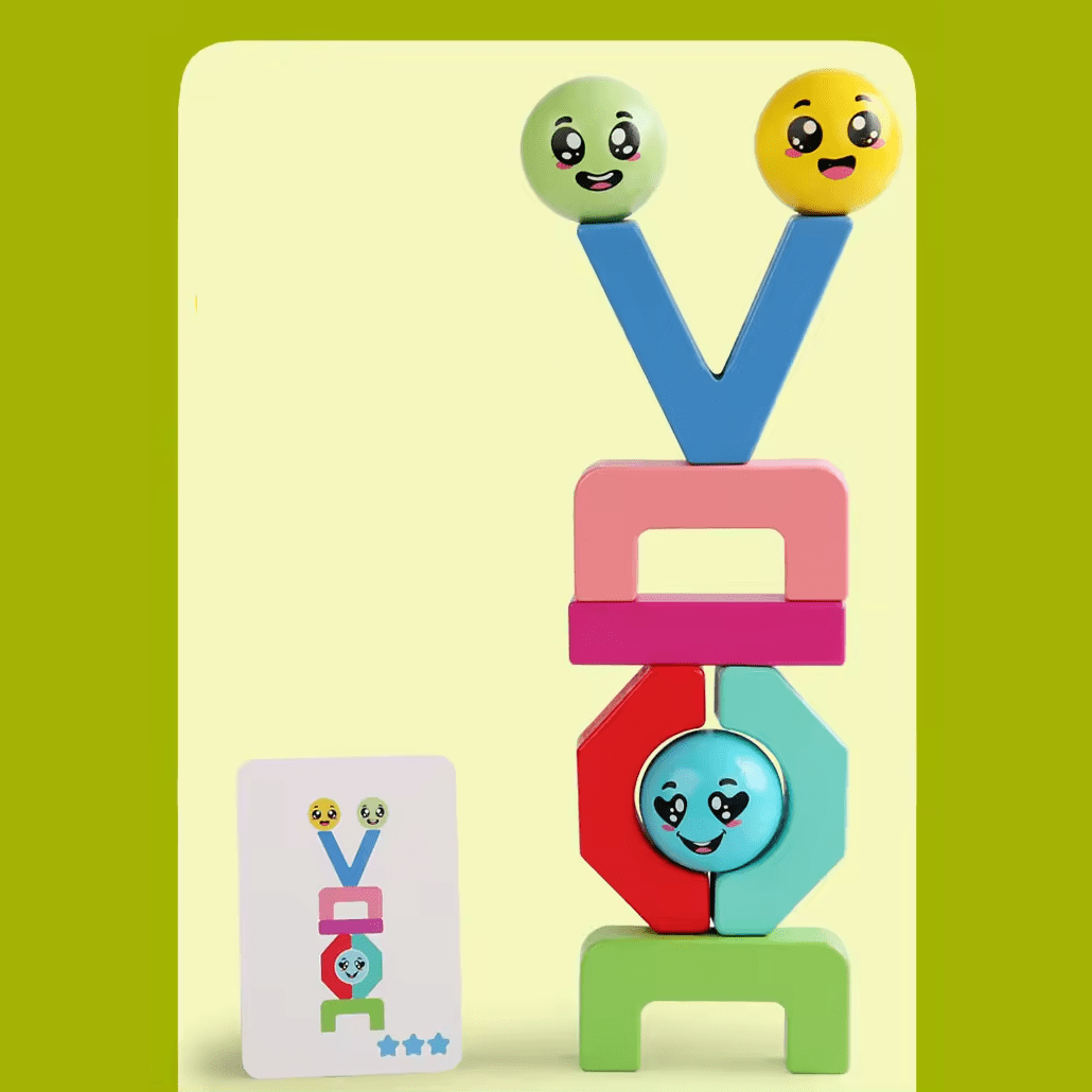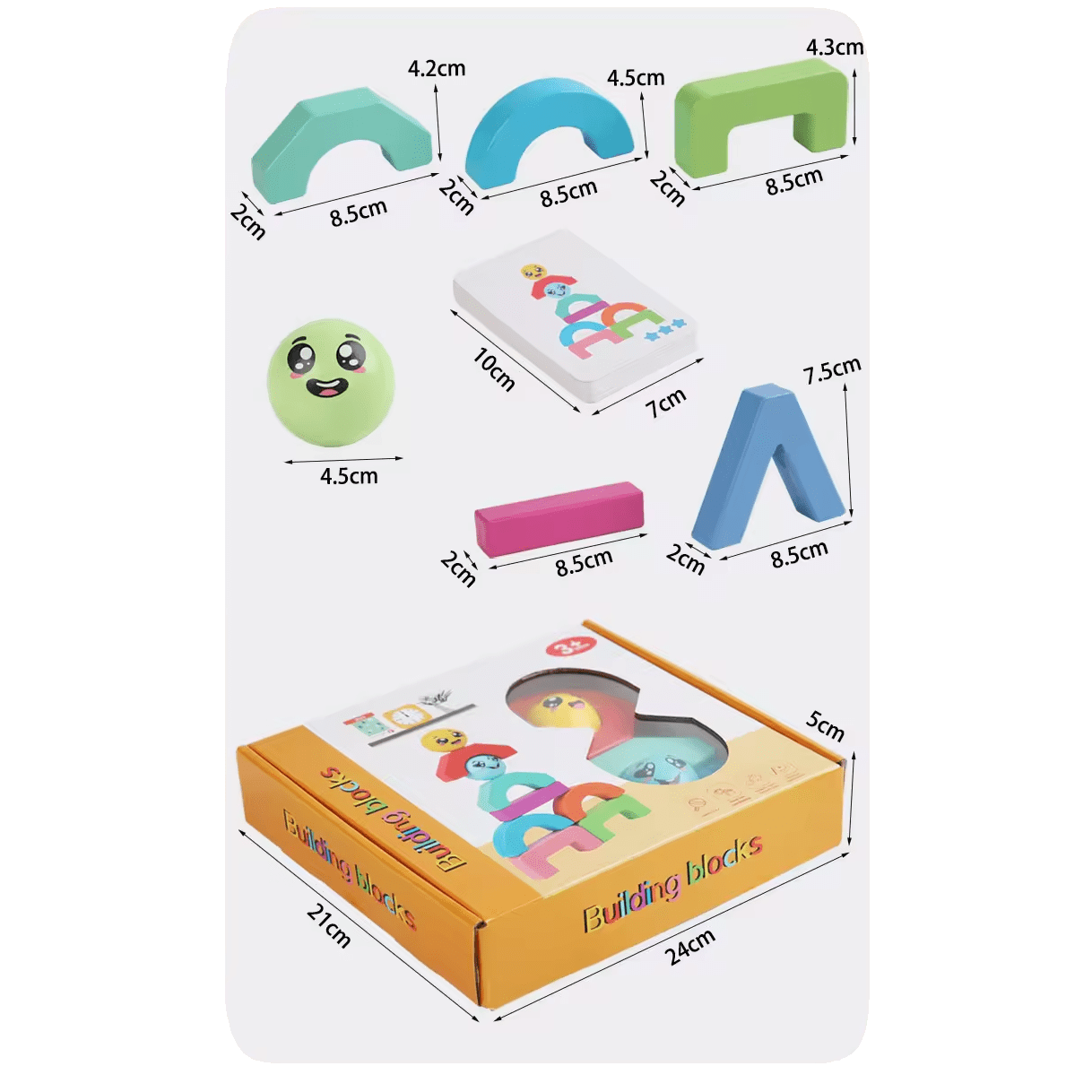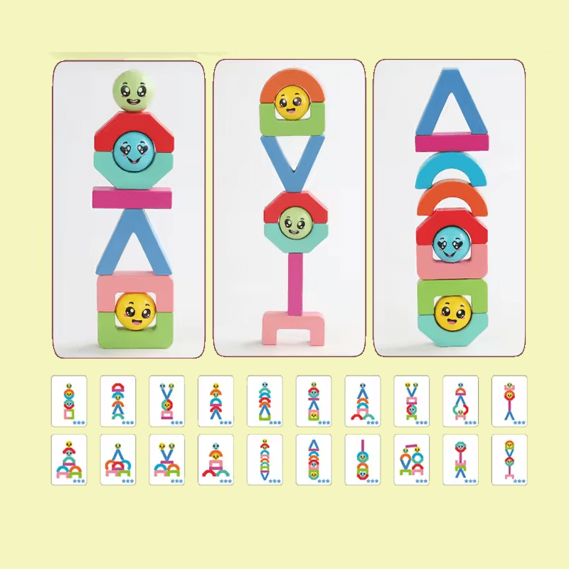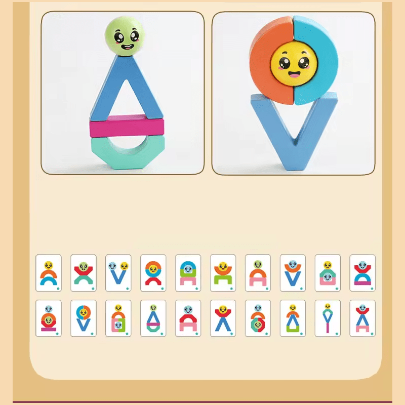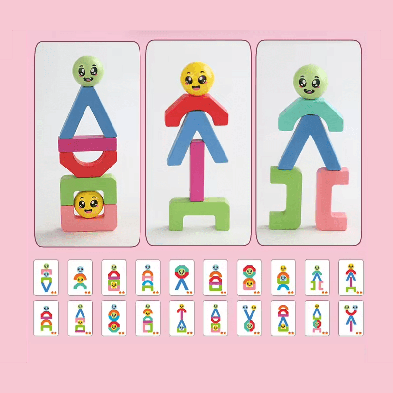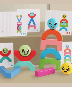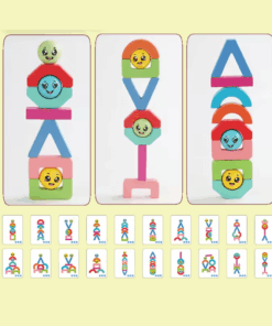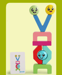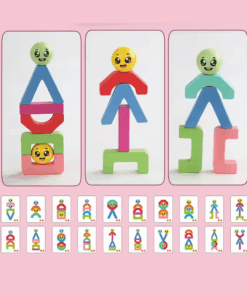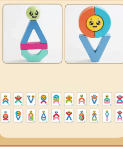 Acest joc interactiv și educativ este perfect pentru copiii de peste 3 ani, ajutându-i să își dezvolte creativitatea, dexteritatea, răbdarea și gândirea logică. Cu piese robuste din lemn, viu colorate, și un set generos de cartonase ilustrate, jocul oferă numeroase posibilități de învățare și distracție. Piesele au forme geometrice diverse, iar copilul poate construi figurine creative și amuzante, inspirându-se din modelele oferite pe cartonasele din set.