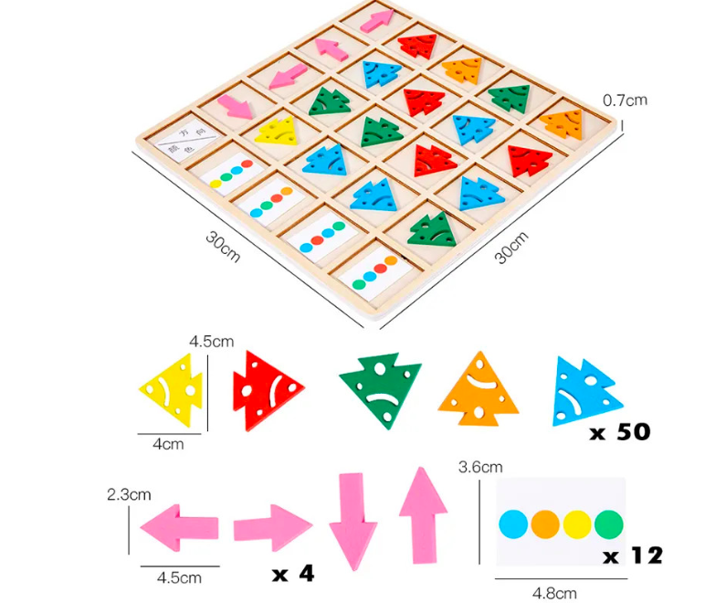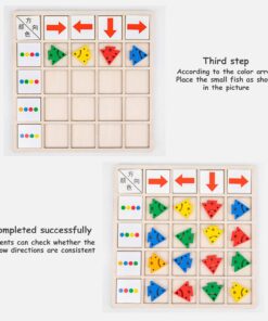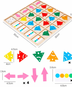 Acest joc educativ Montessori este ideal pentru dezvoltarea abilităților cognitive, logice și motrice ale celor mici. Creat special pentru copii de la 3 ani în sus, jocul ajută la învățarea culorilor, direcțiilor și a recunoașterii spațiale într-un mod interactiv și distractiv.