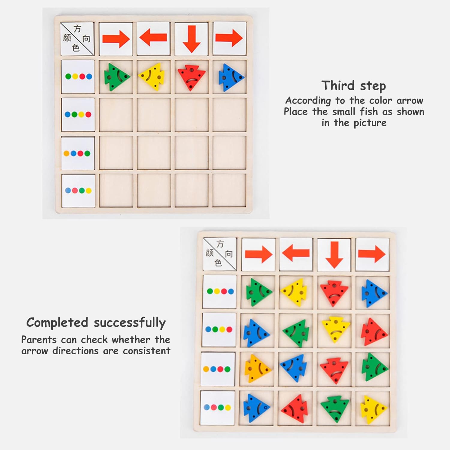 - Gândire logică și spațială: Activitatea de aranjare conform culorilor și direcțiilor stimulează procesul de raționare.