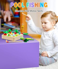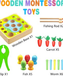 Joc educativ Montessori din lemn – Dexteritate și pescuit magnetic, 3 ani+