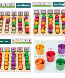 Un joc de sortare și învățare inspirat de natura din grădină, conceput pentru copiii de la 3 ani în sus. Acest set complet ajută la dezvoltarea abilităților logice, matematice și motorii prin activități de sortare după culoare, formă și număr. Ideal pentru jocuri educative acasă sau în grădinițe, în spiritul metodei Montessori.