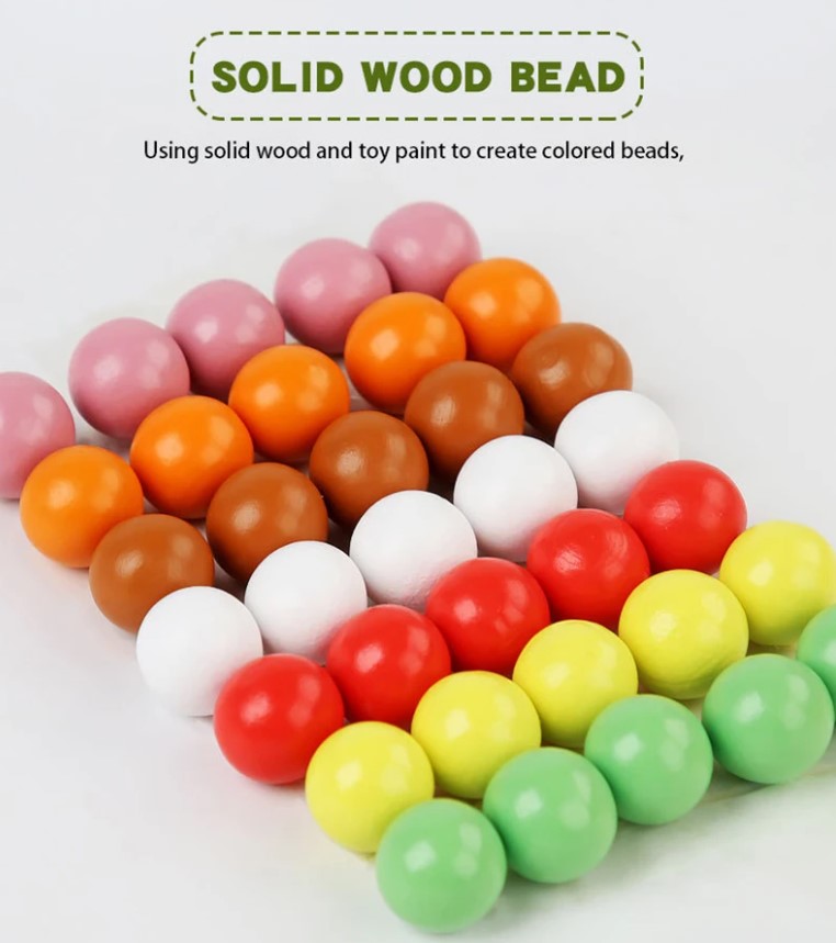 35 bile colorate din lemn (7 culori × 5 bucăți fiecare).