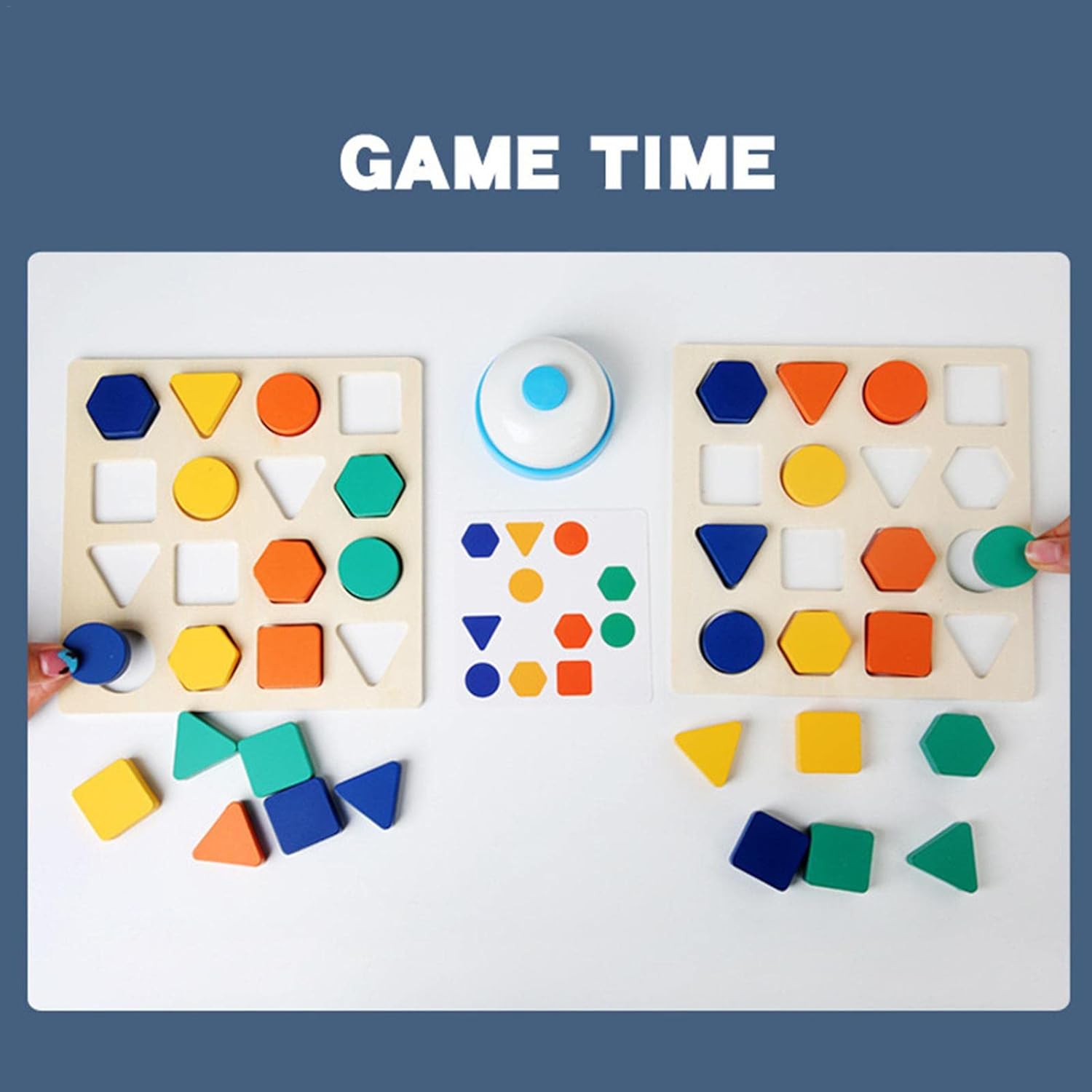 - 32 piese cuburi din lemn, adica cate 16 forme geometrice de diferite culori pentru fiecare jucator x 2;