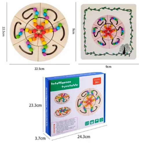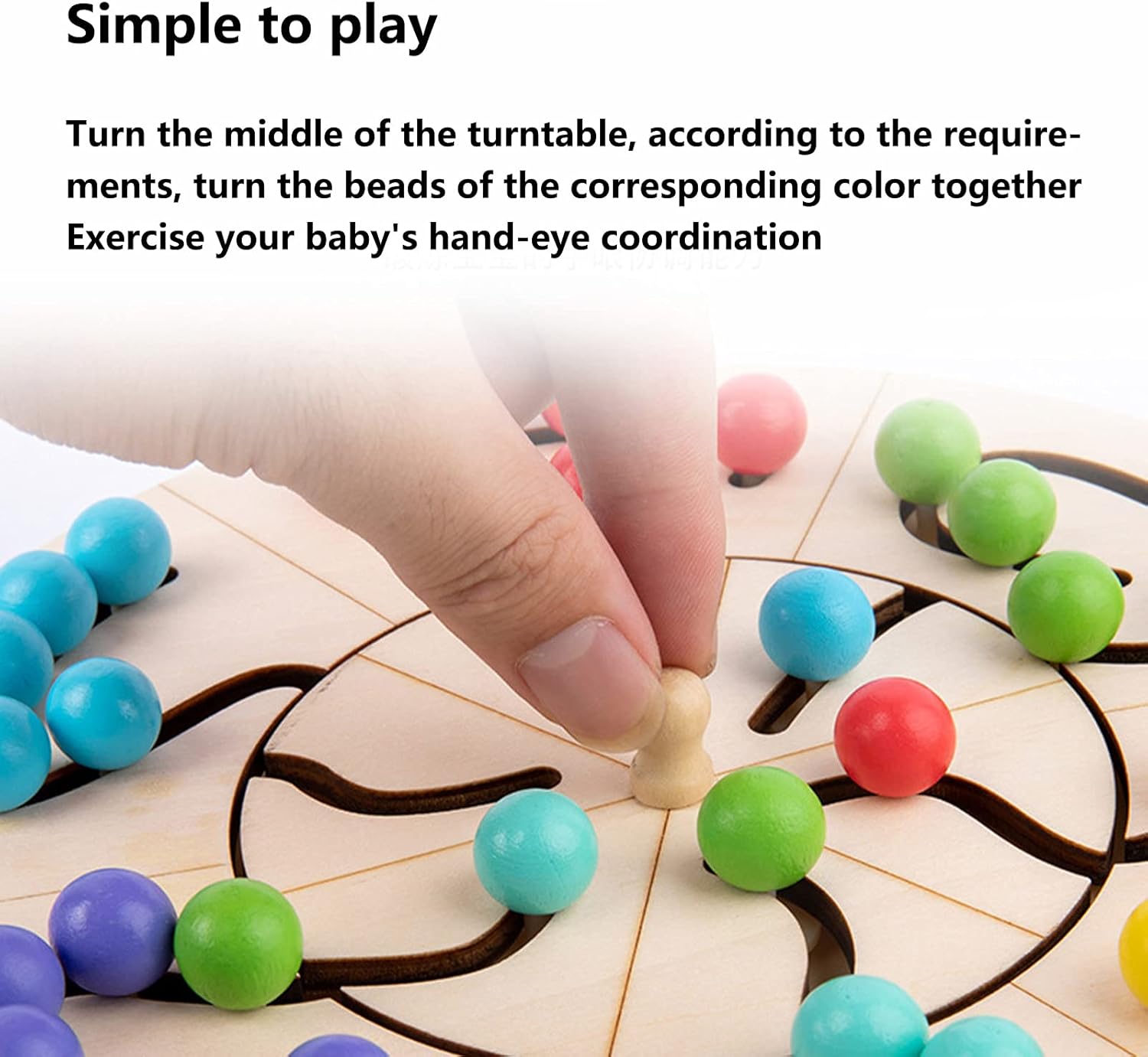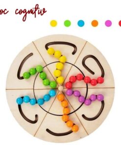 Un joc educativ și captivant care stimulează dezvoltarea motrică, coordonarea mână-ochi și gândirea logică a copiilor. Acest puzzle motric de tip Montessori constă într-un disc din lemn cu bile colorate, special conceput pentru a oferi o experiență interactivă și sigură pentru cei mici.
