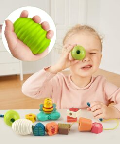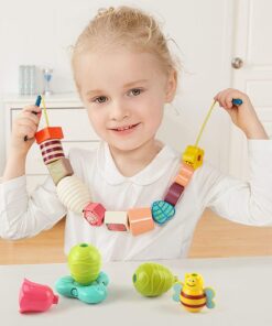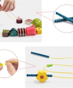 Șiretuit simplu: Copilul introduce mărgelele pe sfoară, dezvoltând precizia de prindere și controlul degetelor. Ideal pentru pregătirea scrisului.