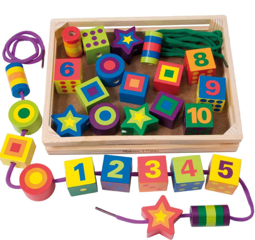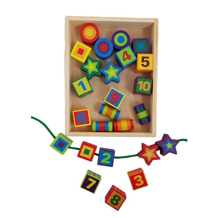 Joc de tip Montessori, set 26 margele mari, din lemn, 3 ani