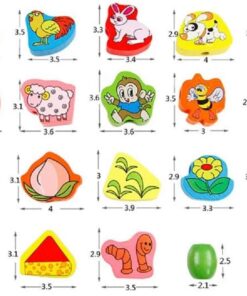 Pentru copii 3 ani+ | Joc de înșiruit și sortat | Tematică: animale și obiecte din mediul înconjurător