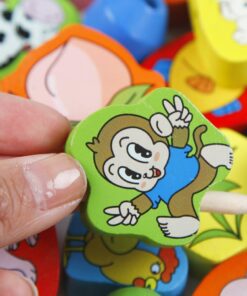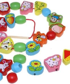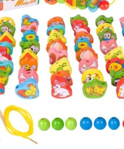 Joc de tip Montessori – Set 56 mărgele din lemn cu animale