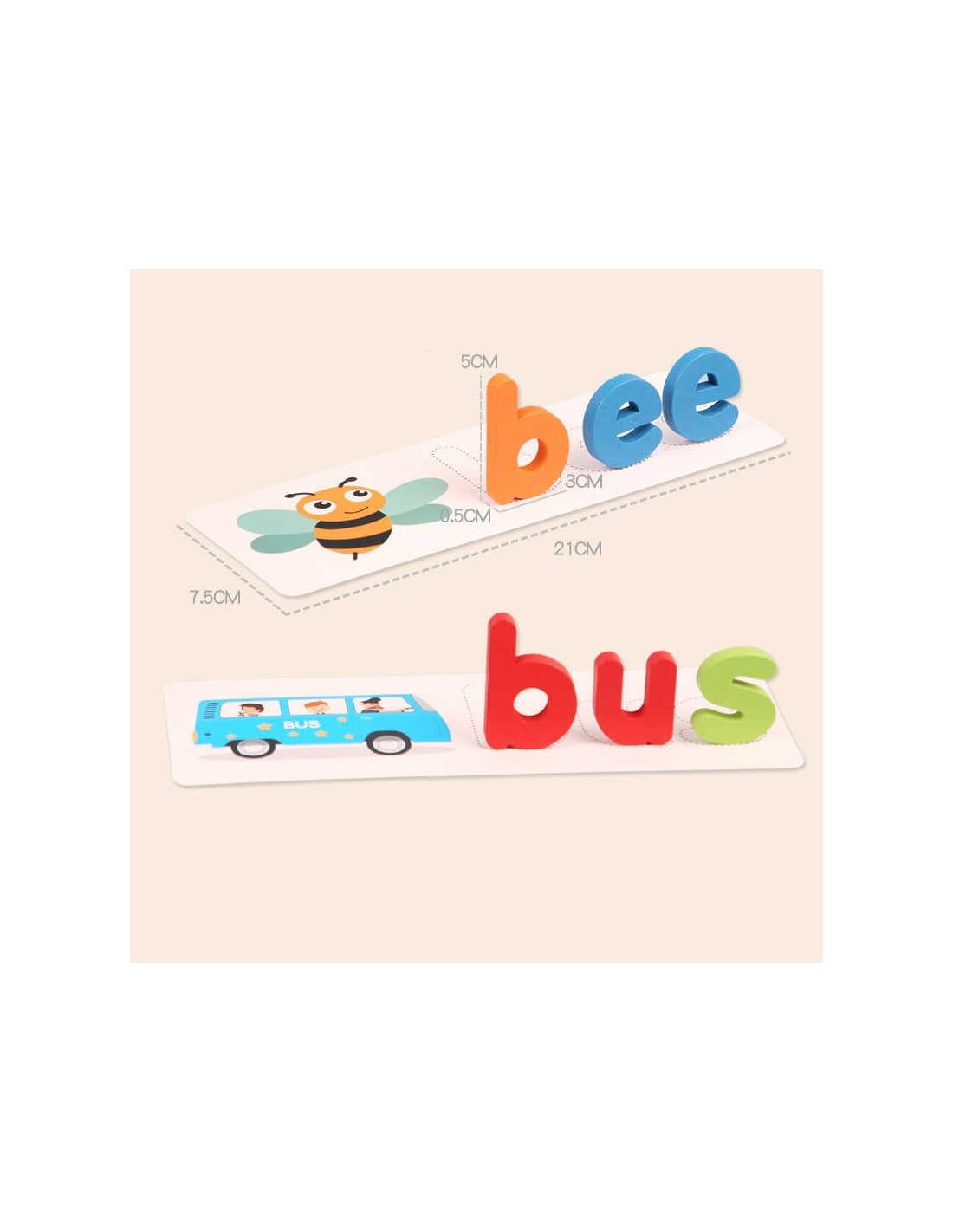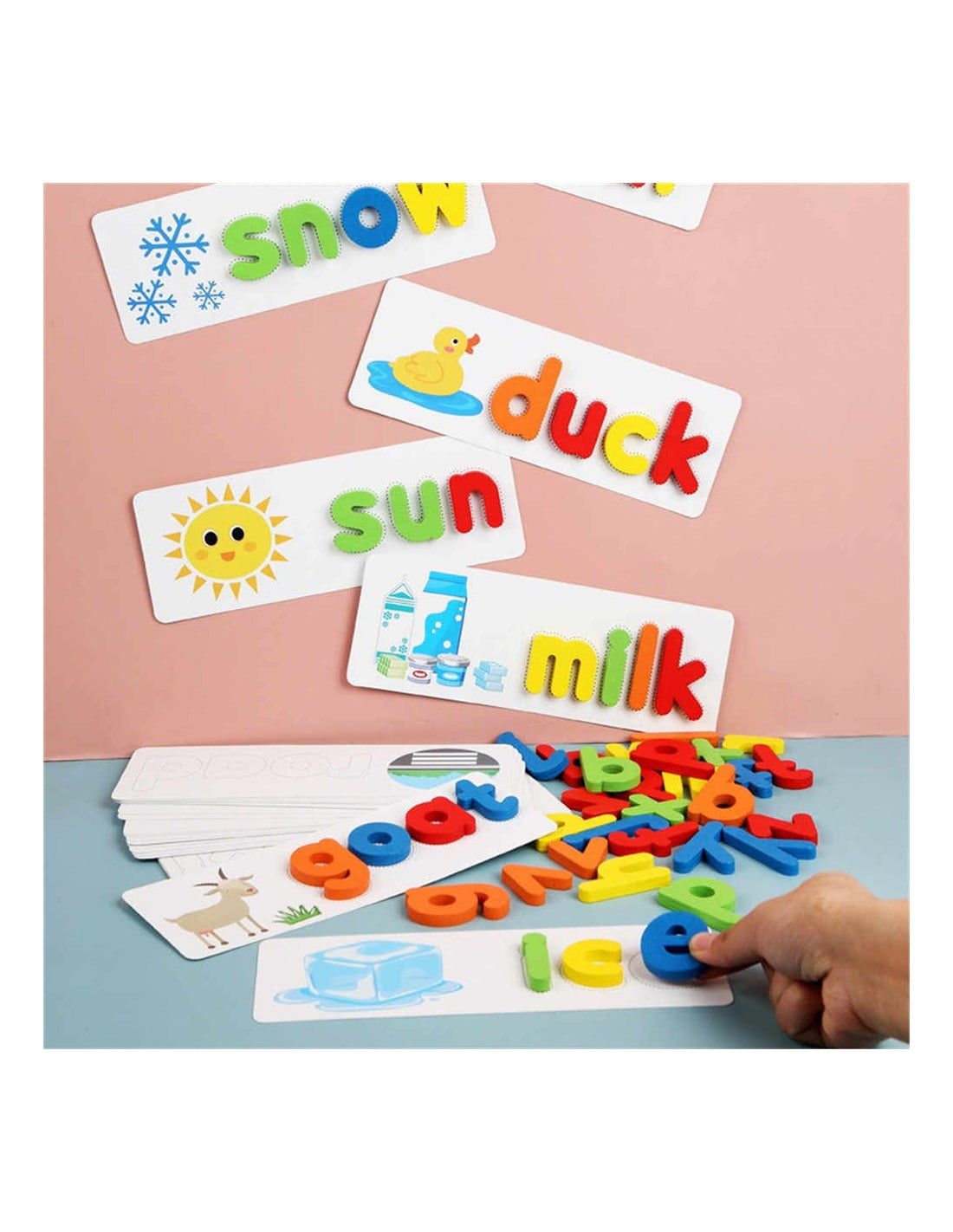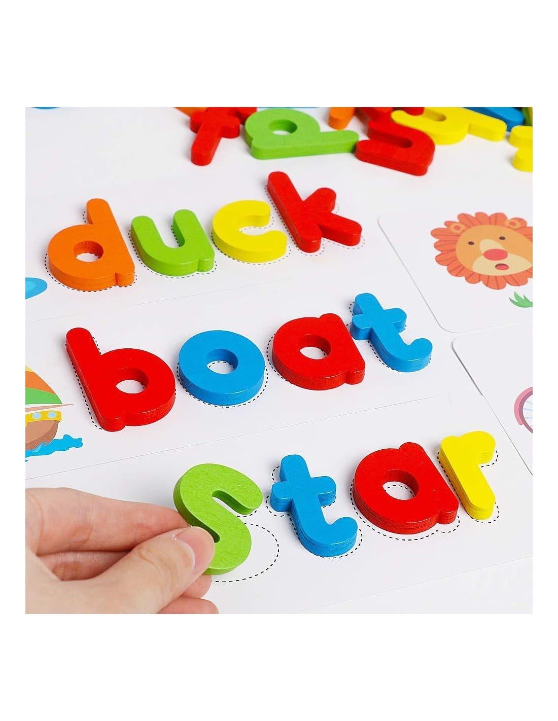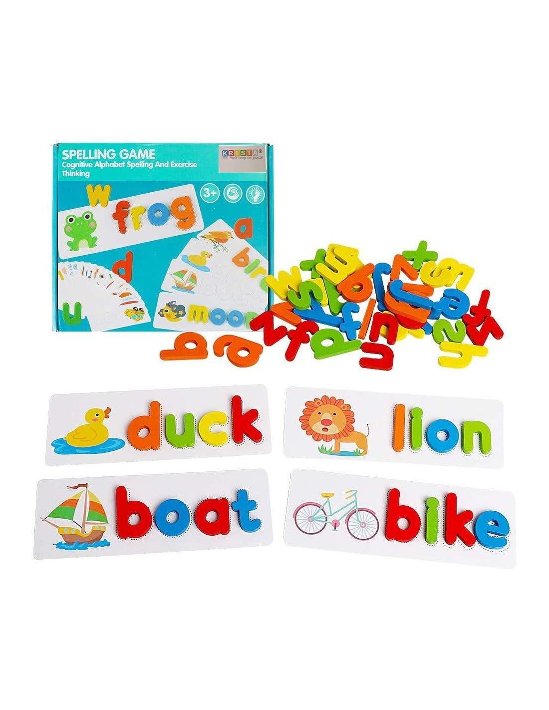 Jocul educativ invata alfabetul si primele cuvinte in limba engleza, dezvolta abilitatea de comunicare, asocierea coordonarea-mana ochi si indemanarea celor mici.