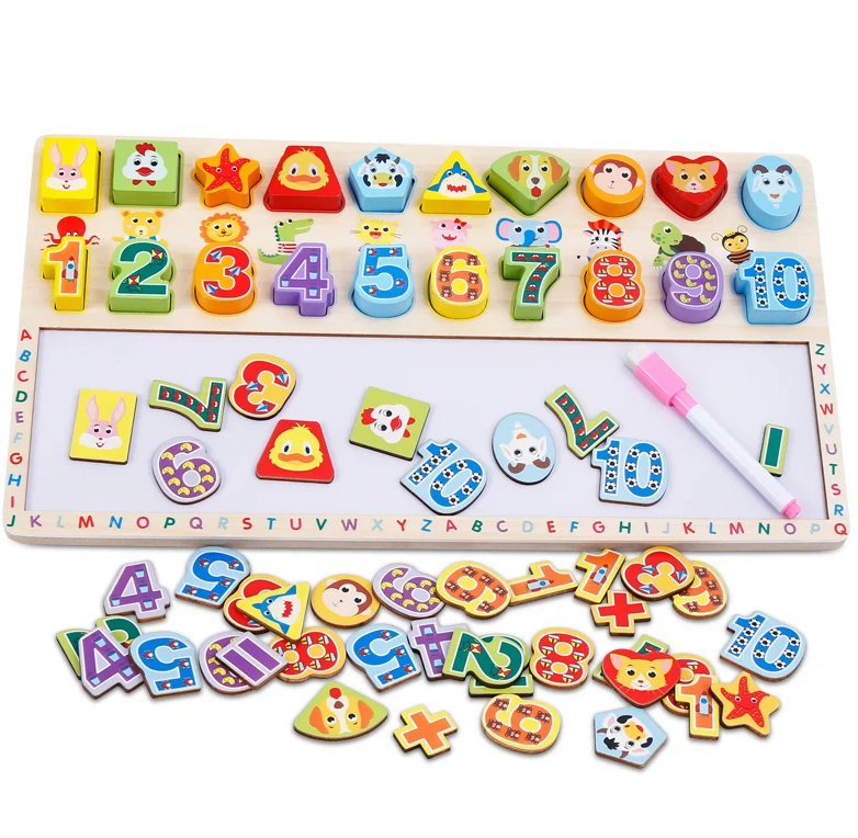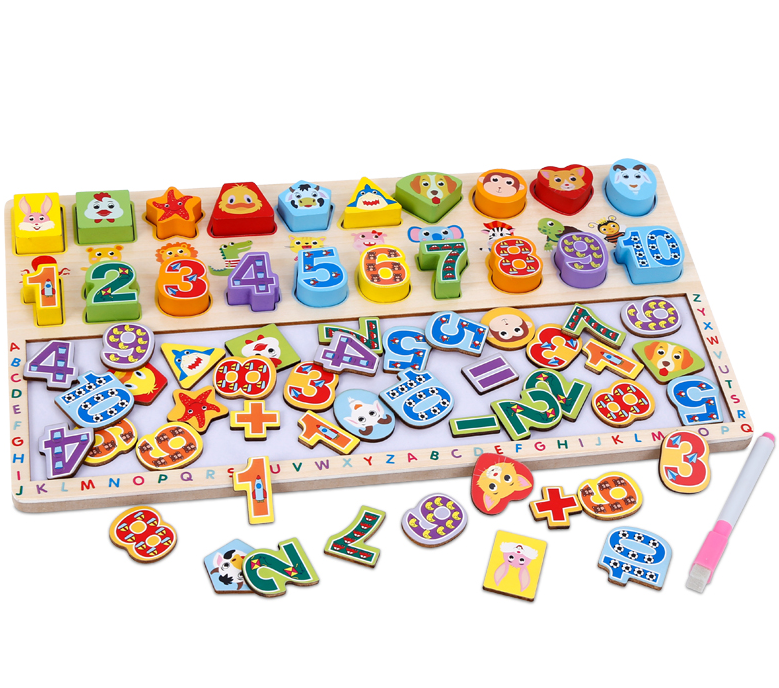Acest joc educativ 3 în 1 oferă copiilor o modalitate creativă și interactivă de a învăța numerele, formele și culorile într-un mod distractiv. Setul include cifre magnetice, forme geometrice viu colorate și o tăbliță de scris magnetică, care îi ajută pe cei mici să-și dezvolte abilitățile motorii fine și să-și îmbunătățească recunoașterea numerelor și a formelor.