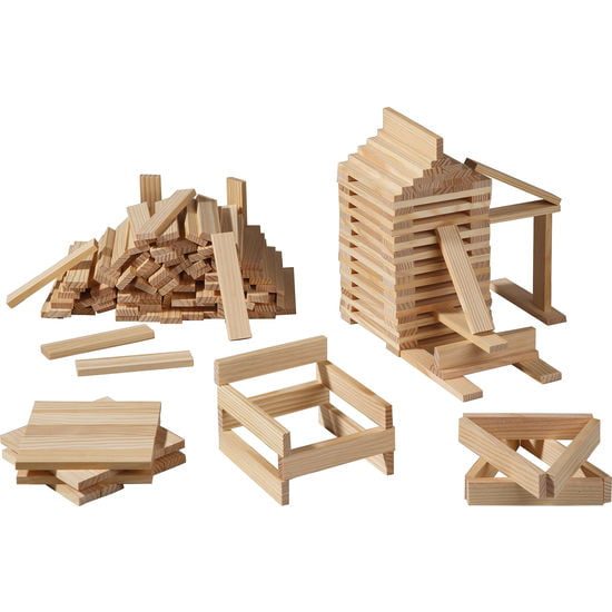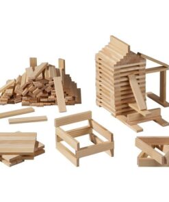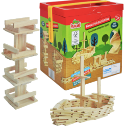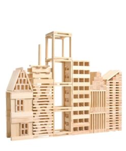 Acest joc educativ de constructie, din lemn natur cu 120 de piese garanteaza foarte multe ore de distractie pentru micutii arhitecti.