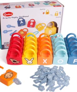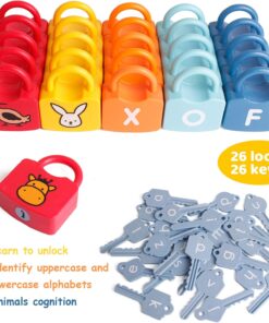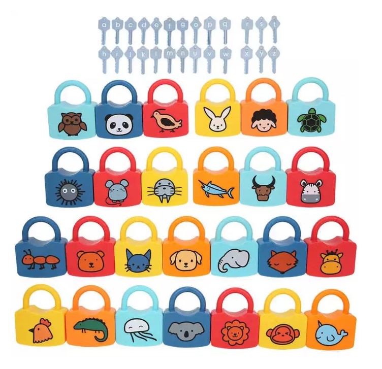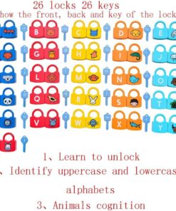Un joc educativ interactiv care îmbină distracția cu învățarea alfabetului, dezvoltarea motricității fine și recunoașterea animalelor! Acest set conține 26 de lacăte colorate și 26 de chei asociate, fiecare marcate cu câte o literă a alfabetului și un desen reprezentativ – oferind copiilor o metodă practică, logică și amuzantă de a învăța prin joacă.