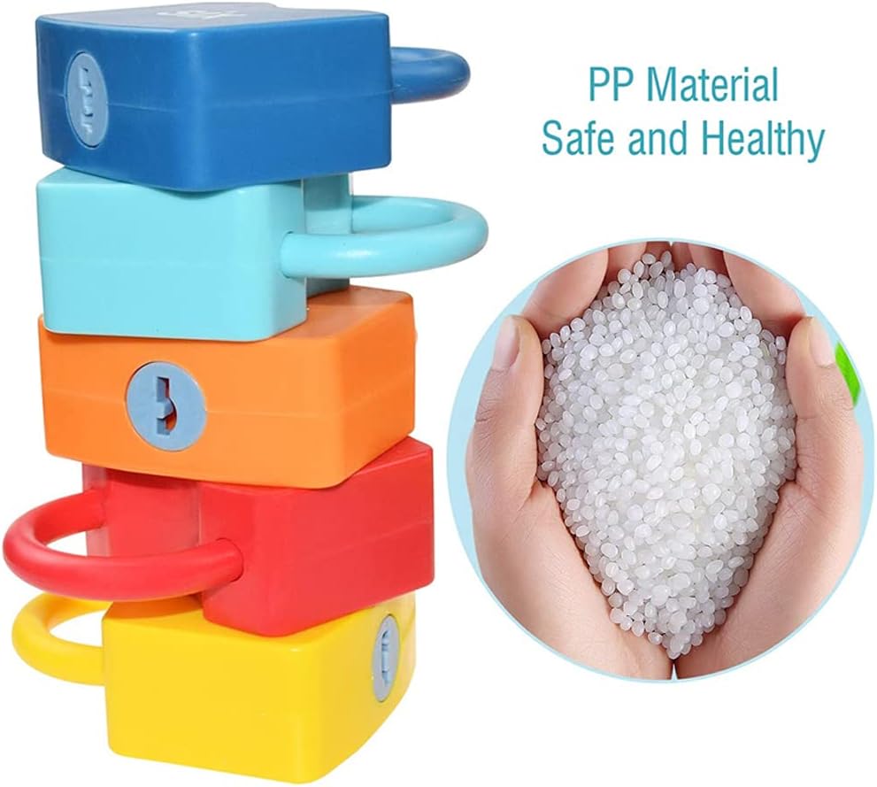 Conține: 10 lacăte colorate + 10 chei numerotate (20 piese).