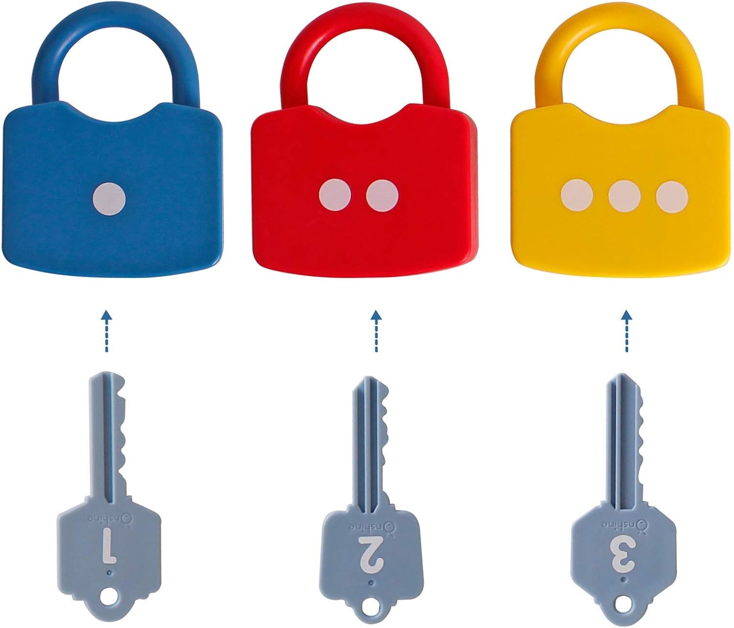 Acest set ajută la dezvoltarea abilităților matematice, a coordonării mână-ochi și a gândirii logice. Prin potrivirea cheilor cu lacătele, copiii învață să recunoască numerele și să facă asocieri corecte, în timp ce se distrează și își dezvoltă independența.