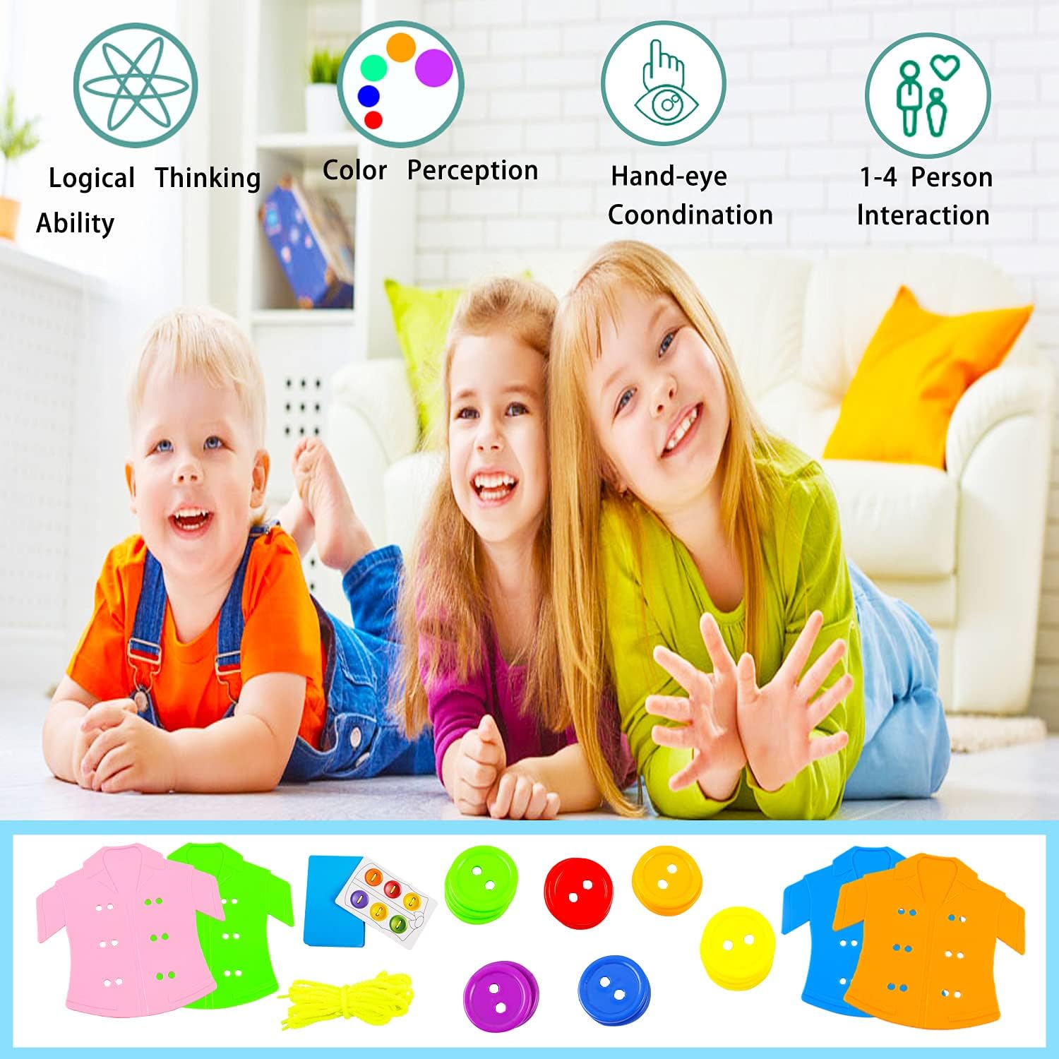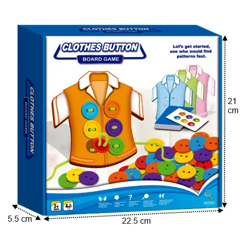 Descoperă un joc educativ interactiv și captivant care ajută la dezvoltarea motricității fine, a coordonării mână-ochi și a gândirii logice. Jocul cu nasturi de șiretuit este ideal atât pentru un singur jucător, cât și pentru doi jucători, fiind o activitate distractivă pentru cei mici.