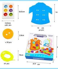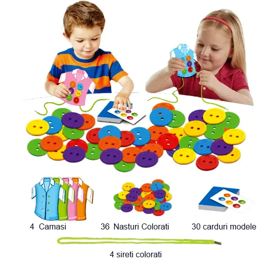 - 36 de nasturi colorați, perfect dimensionați pentru mâinile micuțe.