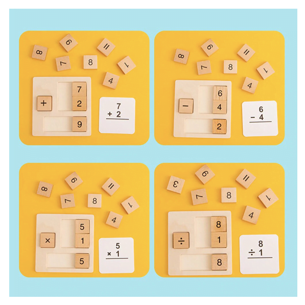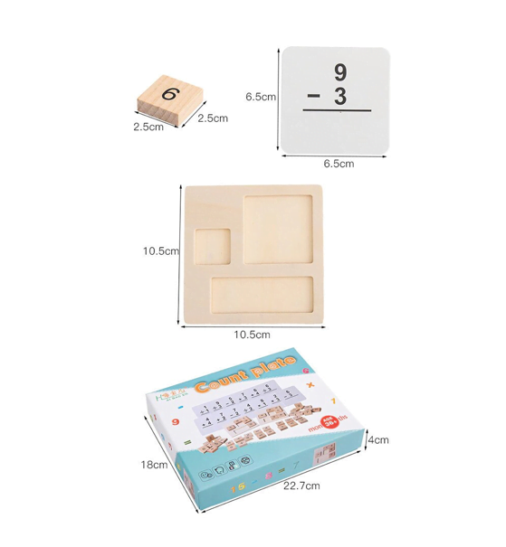 Acest joc educativ de tip Montessori, din lemn, este adresat copiilor prescolari pentru a invata numerele si a executa operatiile aritmetice simple.
