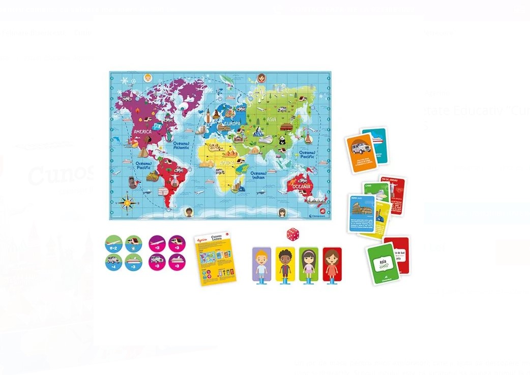 Lansează-te într-o aventură fascinantă și descoperă minunile lumii cu „Cunosc Lumea”, un joc de masă interactiv, conceput special pentru micii exploratori de peste 6 ani. Prin acest joc captivant, copiii învață geografia și se familiarizează cu locuri emblematice ale globului, într-un mod educativ și distractiv.