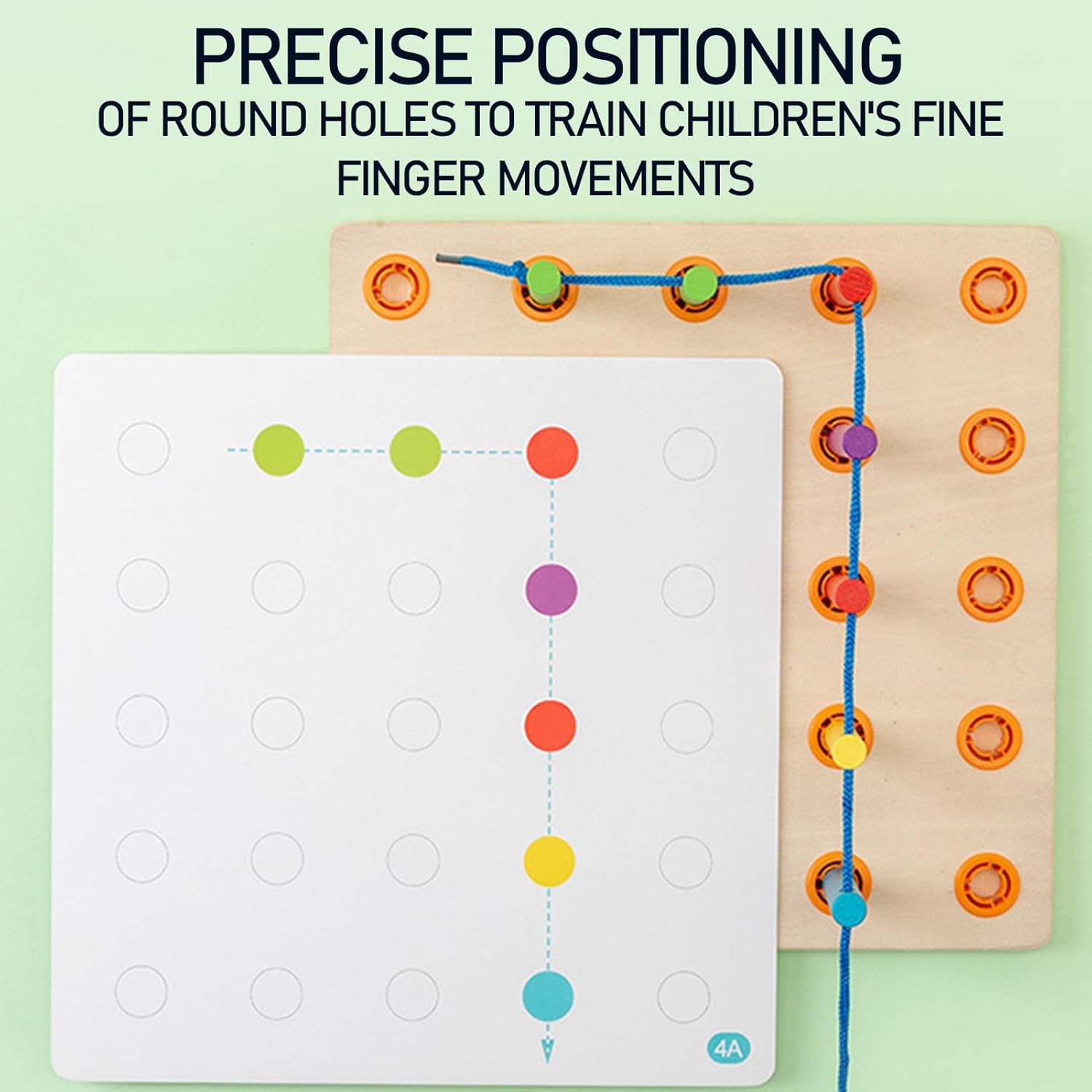 - Dezvoltarea motricității fine: Manipularea știfturilor și a șnururilor ajută la consolidarea mușchilor mici ai mâinii.