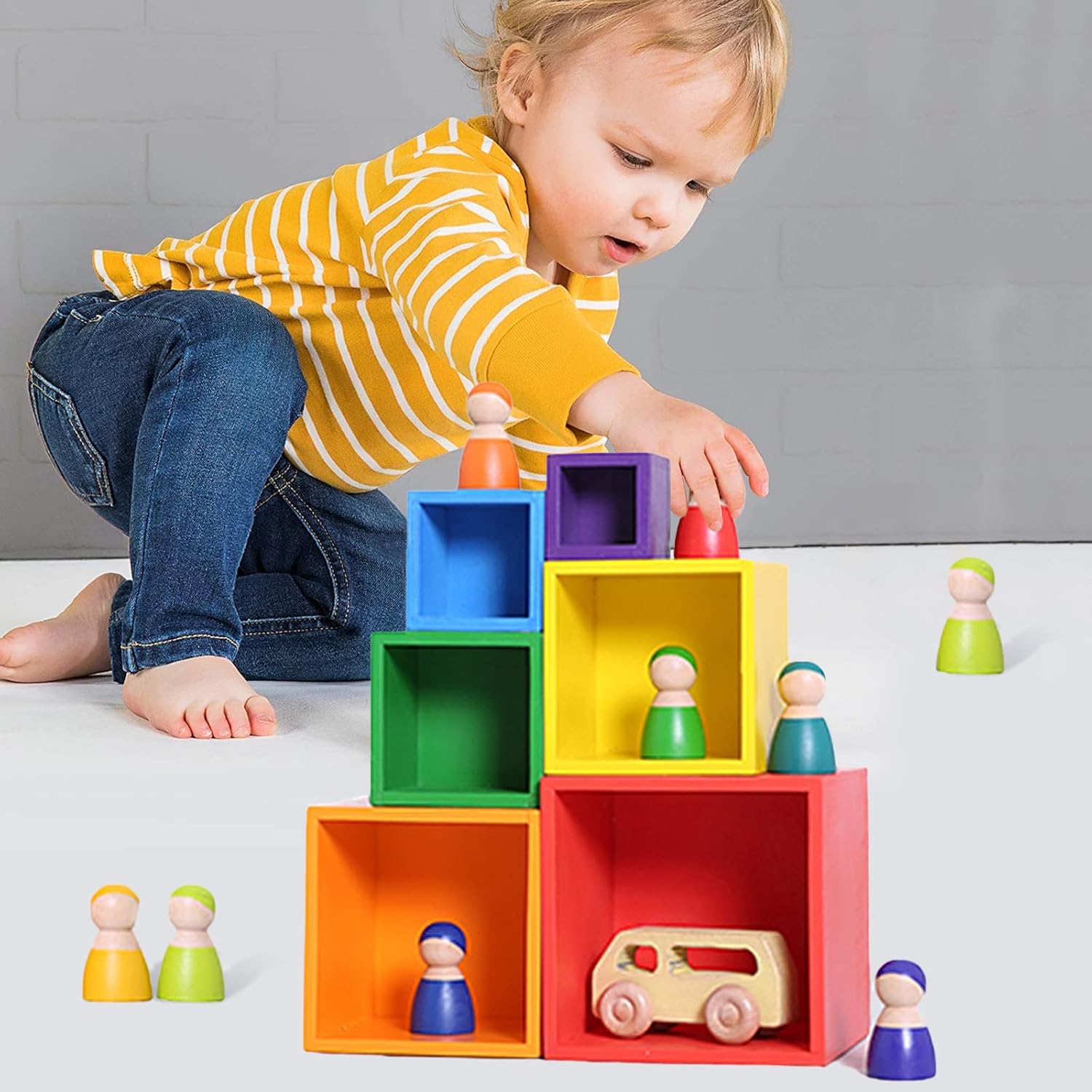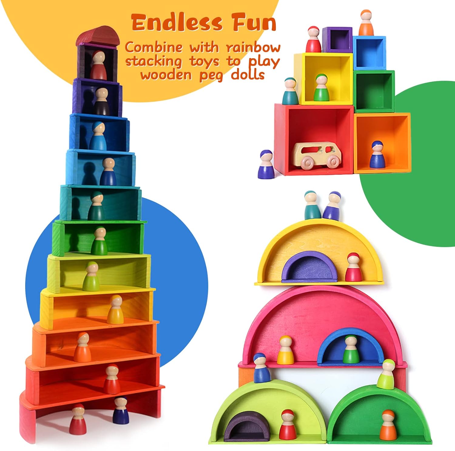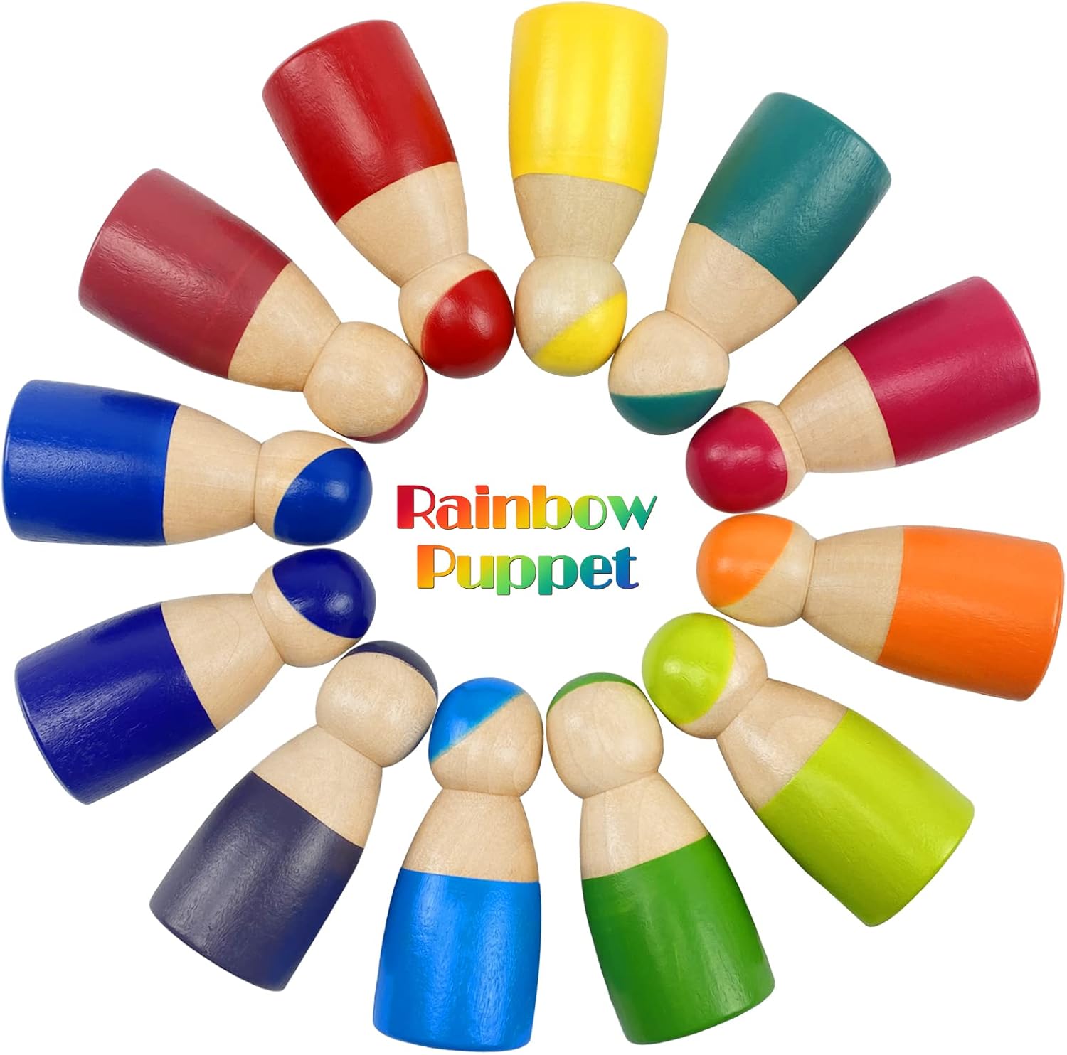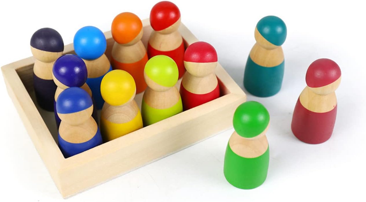 Acest produs este o jucărie educativă de tip Montessori, compus din 12 figurine colorate din lemn. Fiecare figurina este vopsită în culori vii, având partea superioară și inferioară în nuanțe complementare, pentru a stimula dezvoltarea vizuală a copiilor. Aceste figurine sunt create din lemn de înaltă calitate, fiind sigure pentru copii datorită marginilor netede și a vopselelor non-toxice folosite.