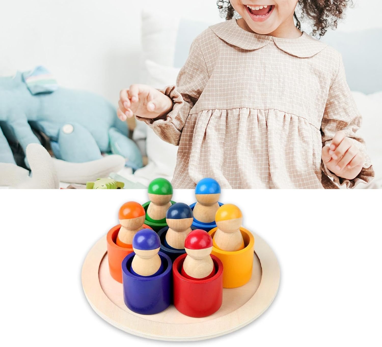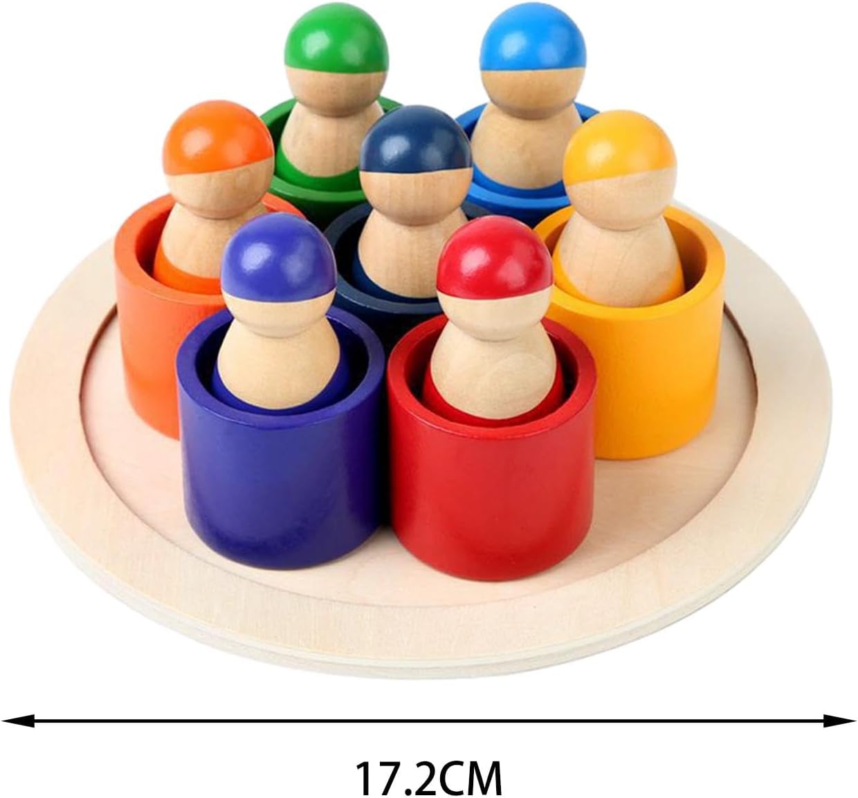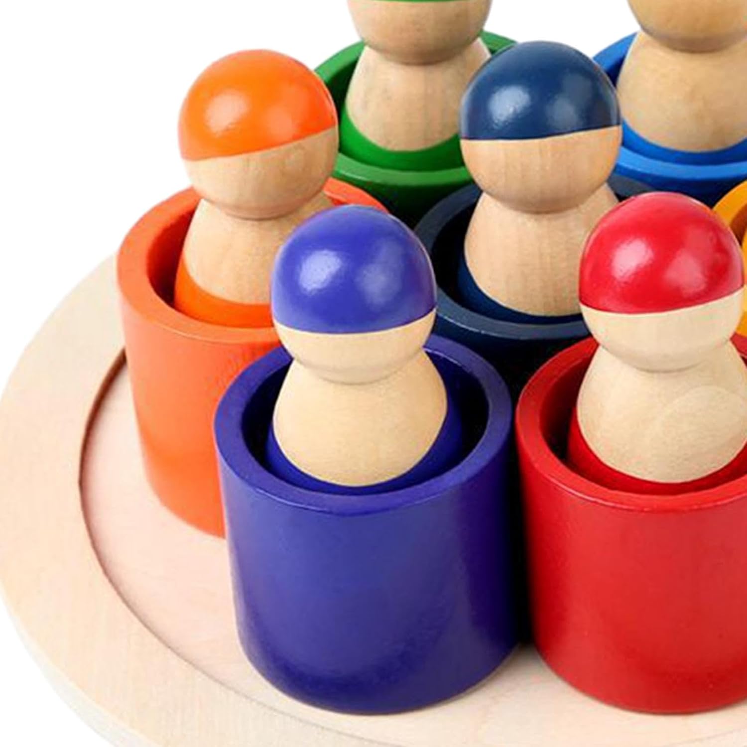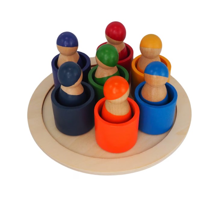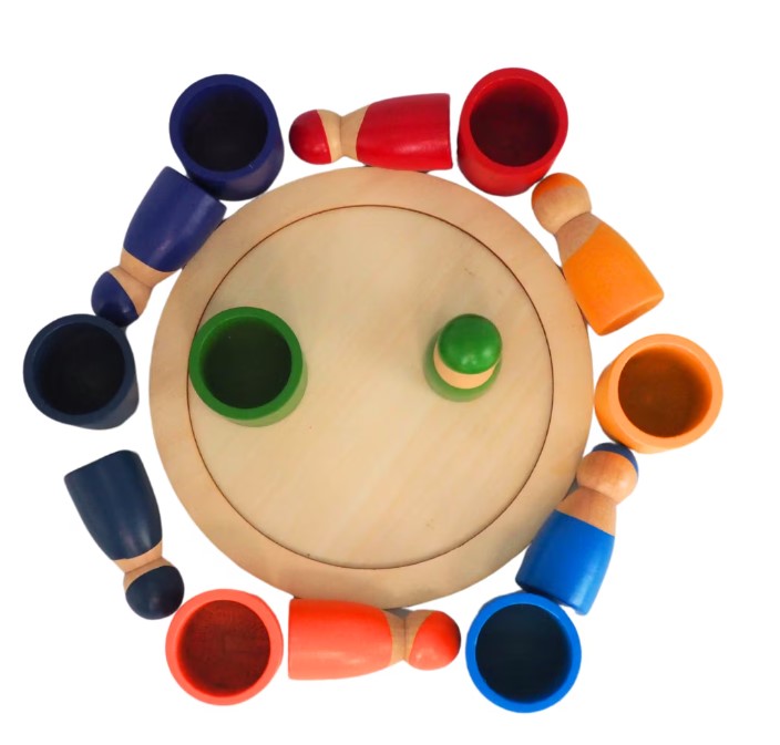 Acest joc educativ de tip Montessori este un instrument ideal pentru dezvoltarea abilităților cognitive, motrice și de recunoaștere a culorilor la copiii mici. Setul este format din 7 figurine din lemn, fiecare cu o culoare distinctă, care se potrivesc în suporturile corespunzătoare – un exercițiu excelent de asociere, sortare și coordonare ochi-mână.