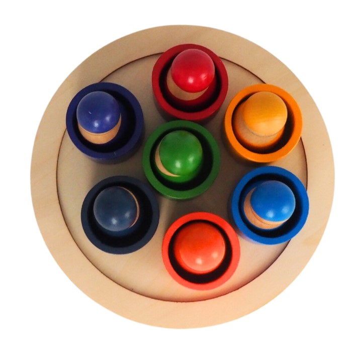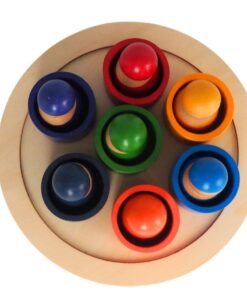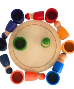 Conține: 7 figurine din lemn + 7 suporturi colorate + tavă rotundă de prezentare