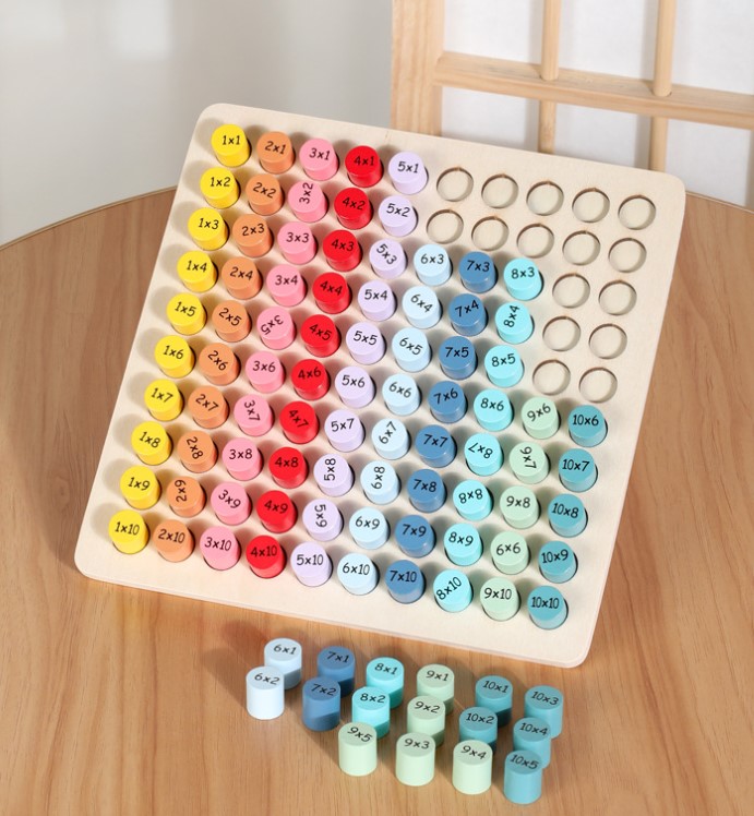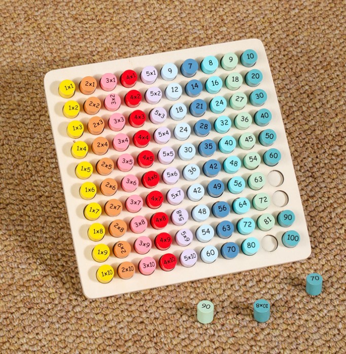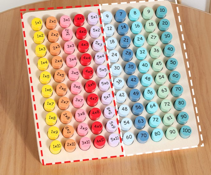 Joc educativ din lemn cu numere, Tabla Inmultirii pana la 10, 100 piese