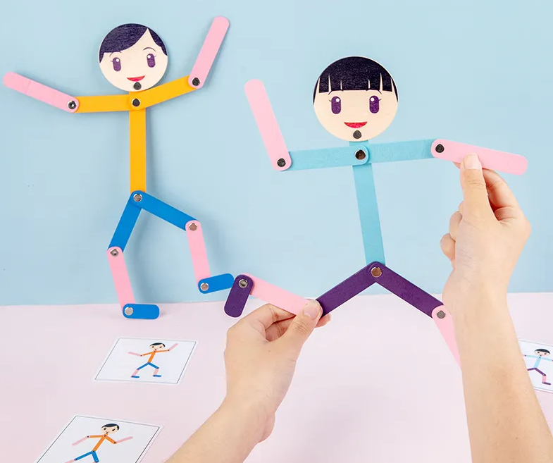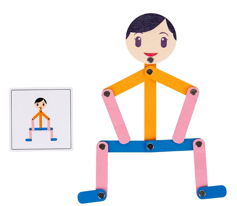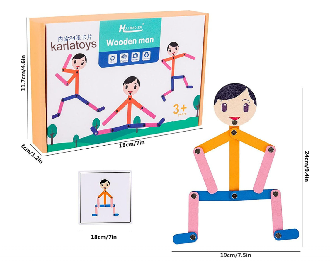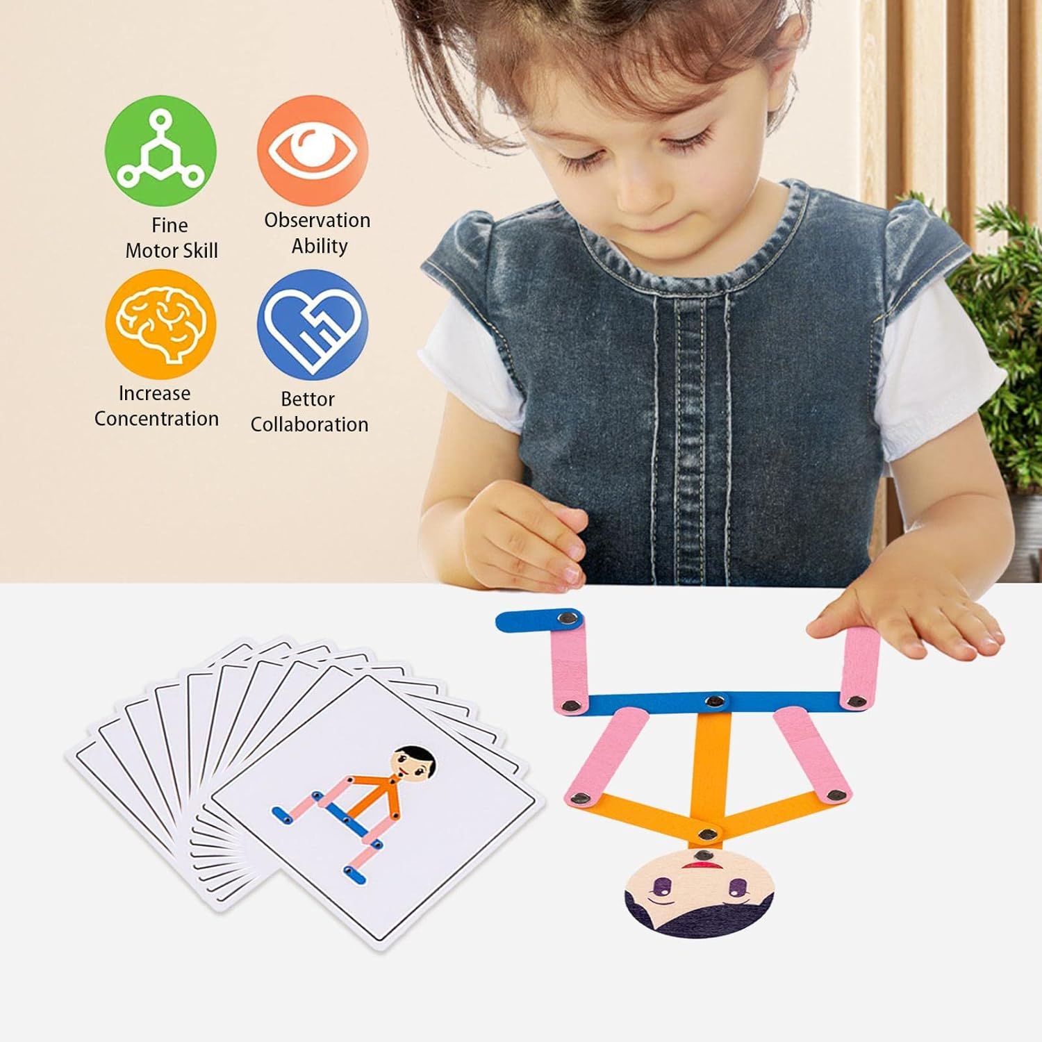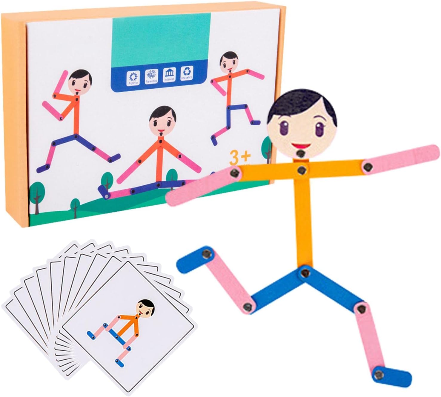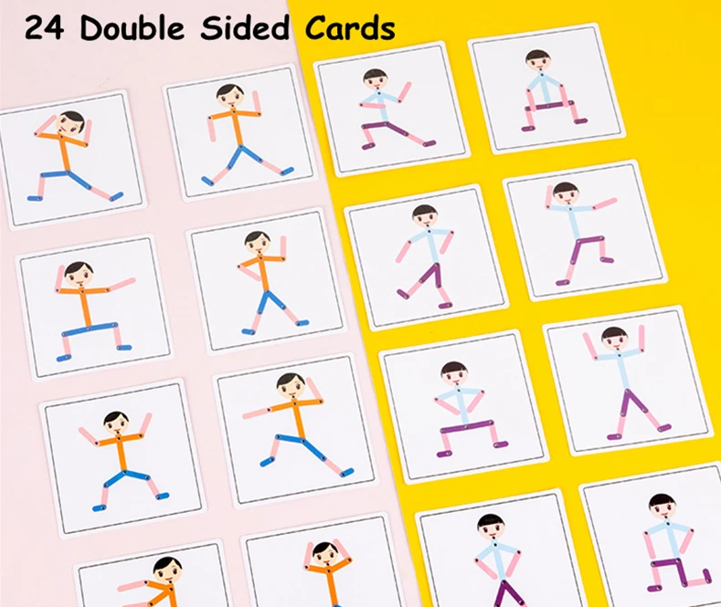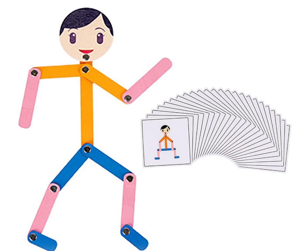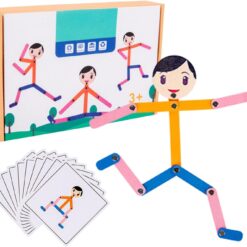 Mod de utilizare: Copii vor replica miscarile afisate pe carduri, indoind corespunzator incheieturile figurinei.