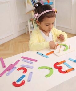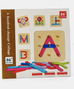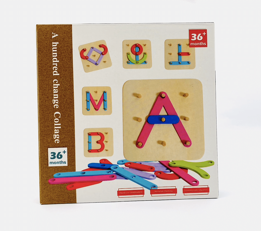 Joc educativ din lemn, Litere si cifre-Geoboard, 3 ani+