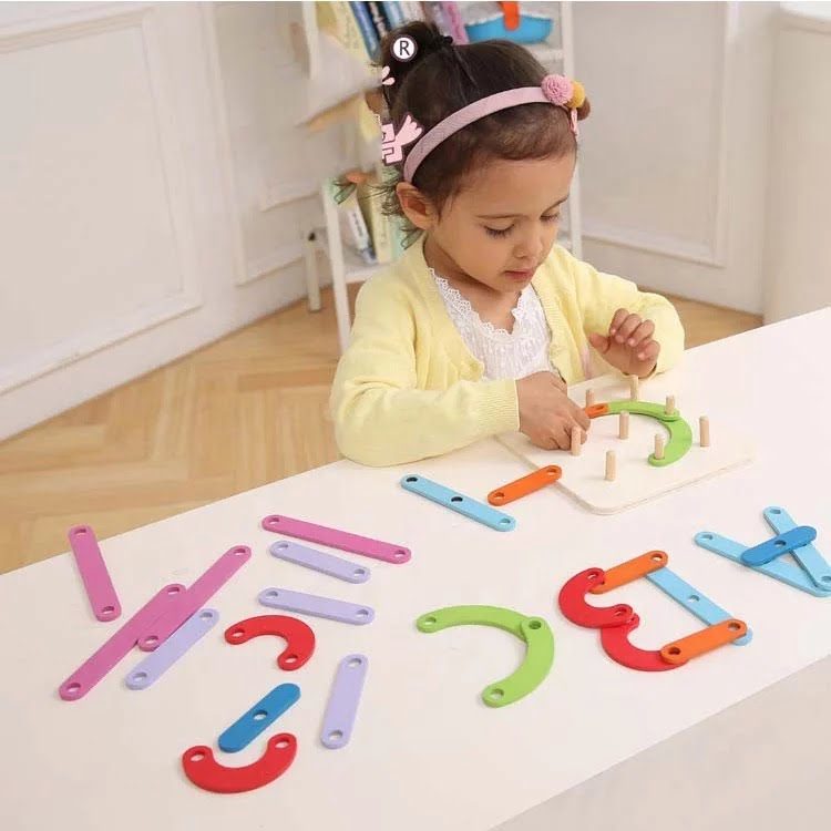 Pe acestea se pot imbina betisoarele din lemn rezultand astfel cifre 0-9, litere( alfabetul) si un numar de forme limitat doar de imaginatie.