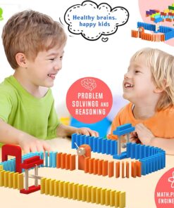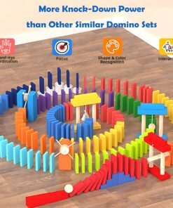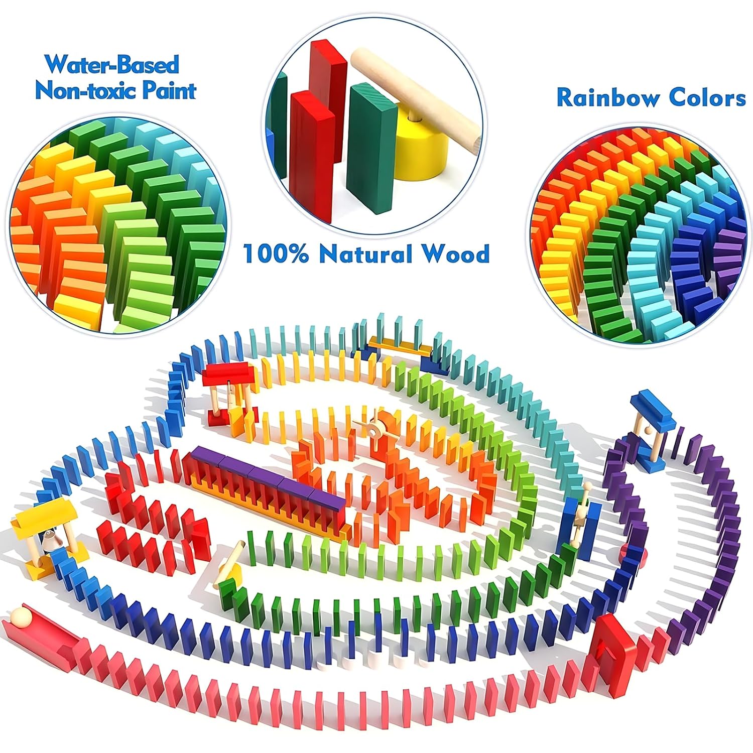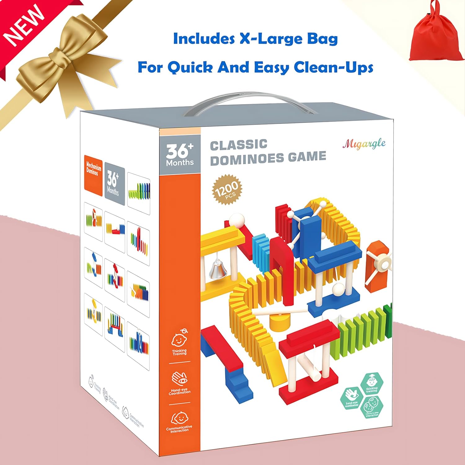 Un joc spectaculos de construcție și reacție în lanț, setul de Domino cu 1200 de piese oferă copiilor ore întregi de distracție creativă. Construit din lemn natural și vopsit cu culori pe bază de apă, setul conține piese dreptunghiulare viu colorate și accesorii speciale care transformă jocul într-o experiență interactivă de tip STEM (știință, tehnologie, inginerie, matematică).