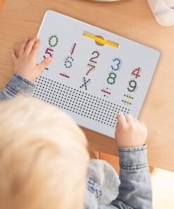 Jocul educativ magnetic „Învață cifrele” este o tablă interactivă cu biluțe metalice ce se ridică la suprafață cu ajutorul unui stilou magnetic.