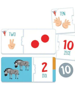 - 10 cartonașe tip puzzle cu animăluțe și cantități,
