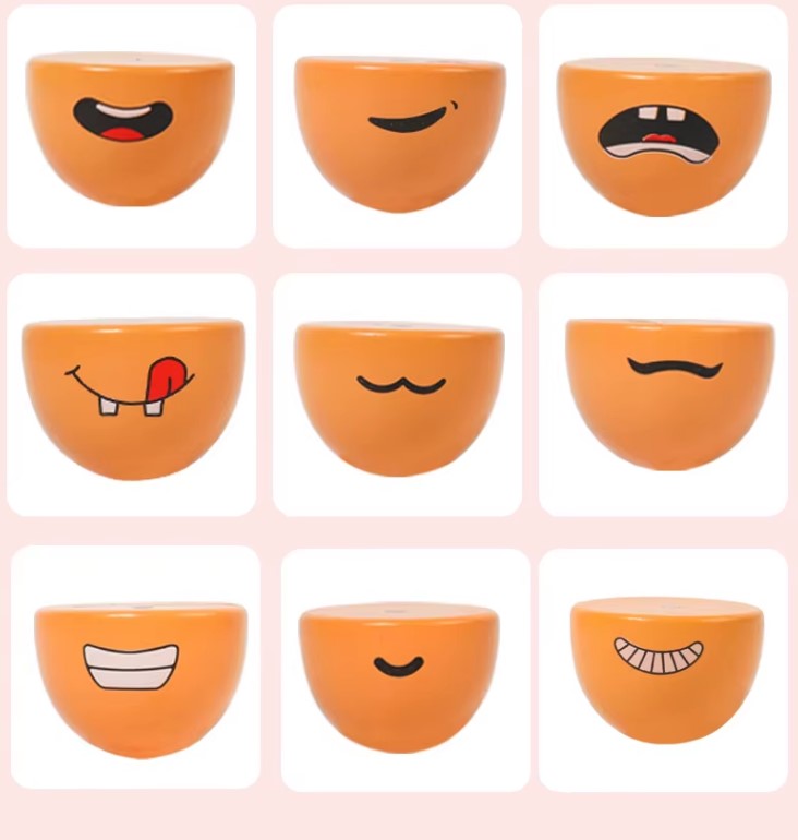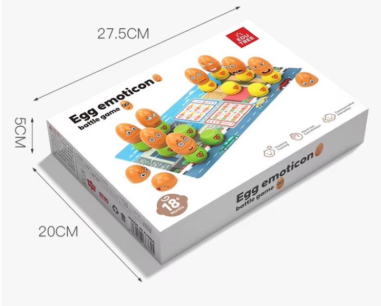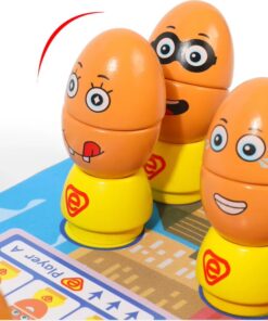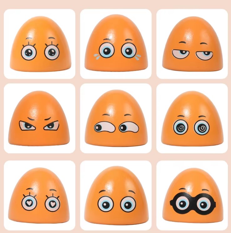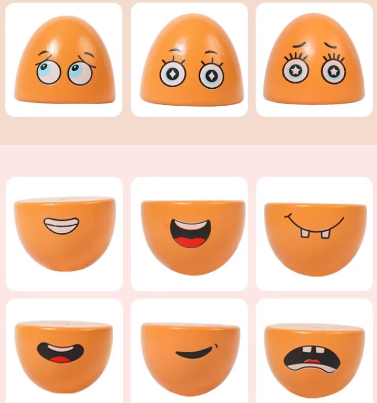 Acest joc educativ distractiv și interactiv îi ajută pe cei mici să descopere și să recunoască emoțiile prin joacă. Ouăle haioase sunt formate din două părți (partea de sus cu ochii și partea de jos cu gura), iar copiii trebuie să le combine pentru a reproduce expresiile corecte.