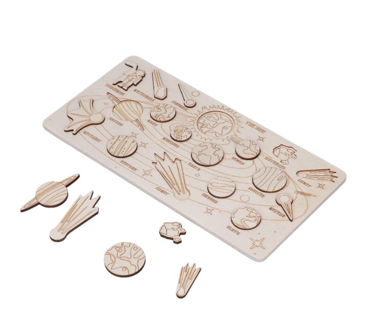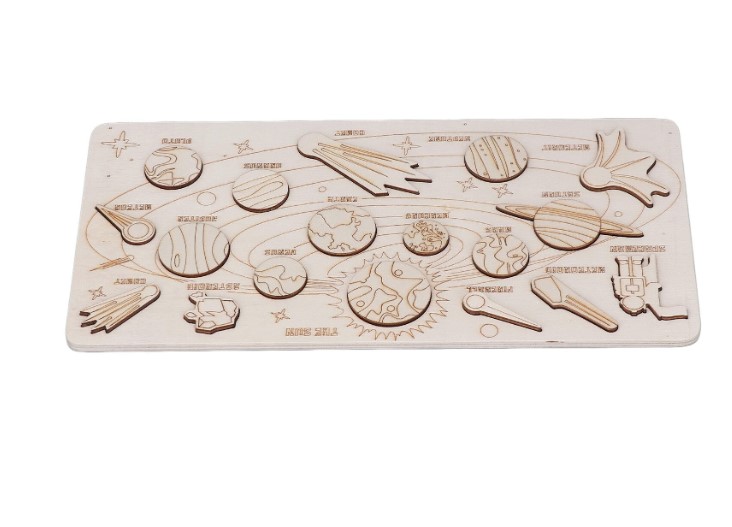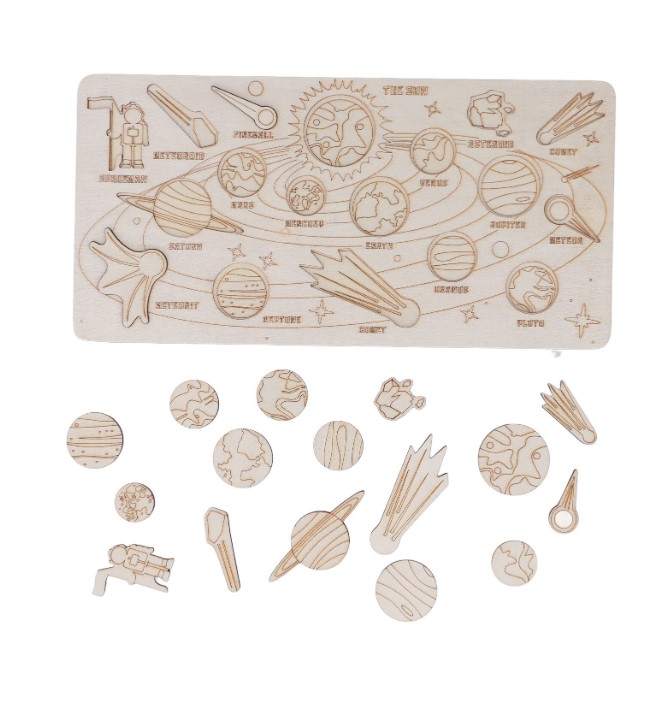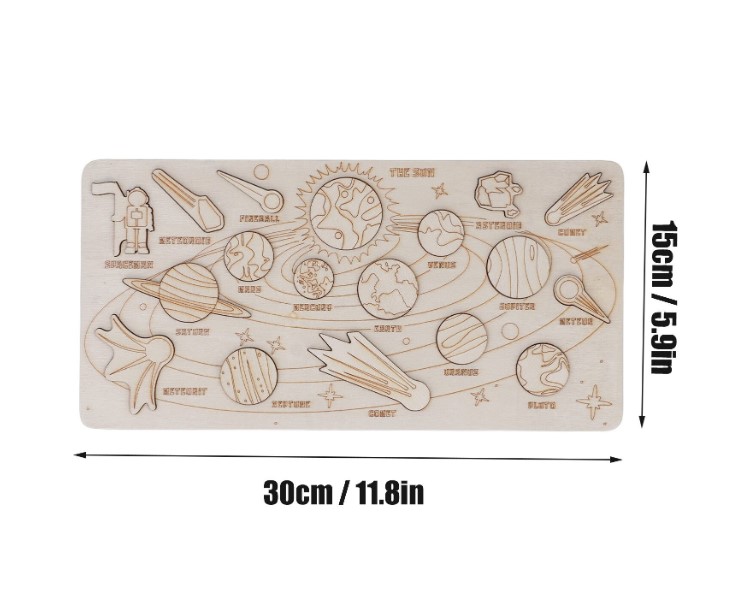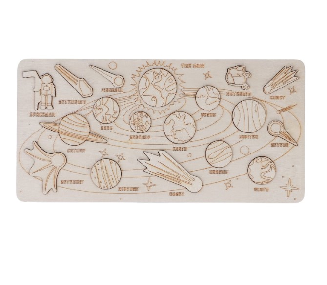 Joc educativ din lemn – Puzzle Sistemul Solar, Natur, 30×15 cm