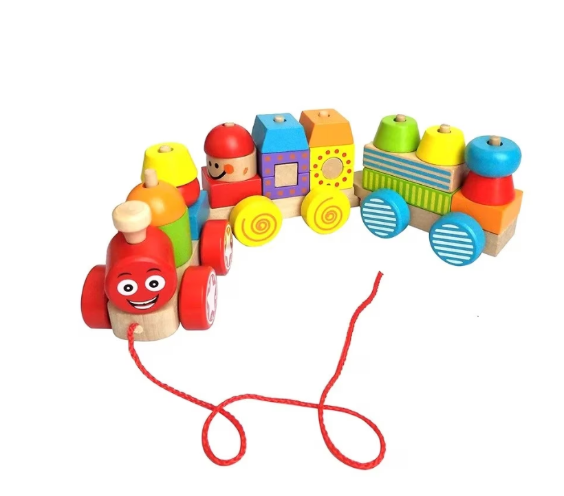 Joc educativ – Trenulet din lemn, joc de stivuire