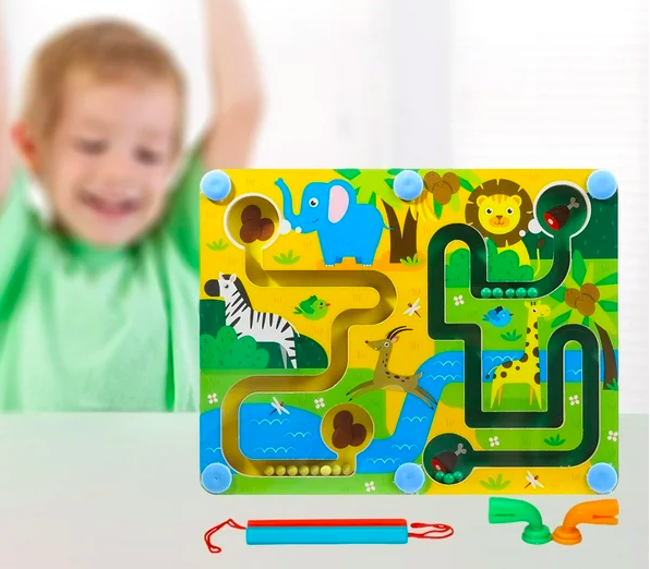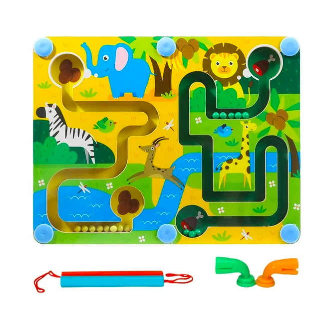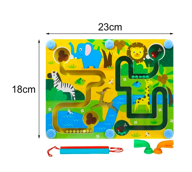 Transformă învățarea într-o aventură captivantă cu jocul educativ Labirint magnetic, Animale Sălbatice! Acest joc interactiv stimulează imaginația și dezvoltarea abilităților motrice fine ale copiilor, oferind ore întregi de distracție educativă.