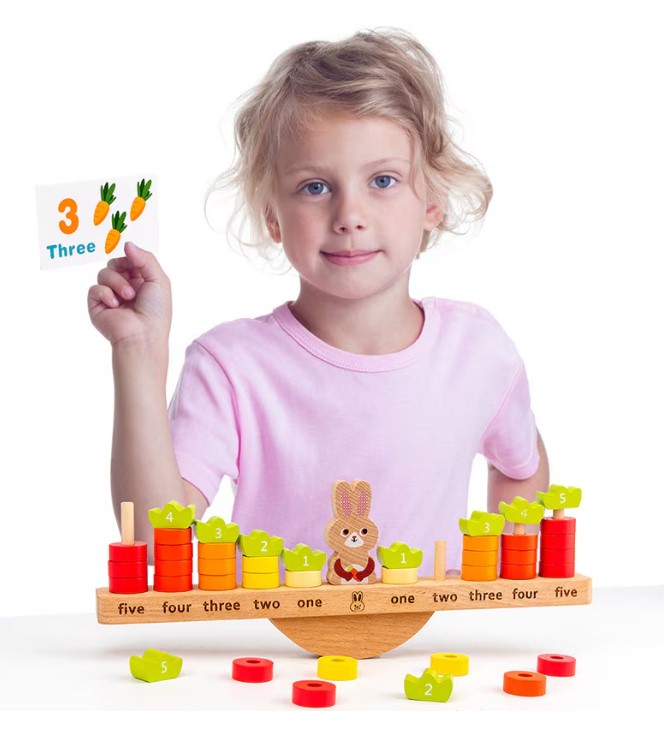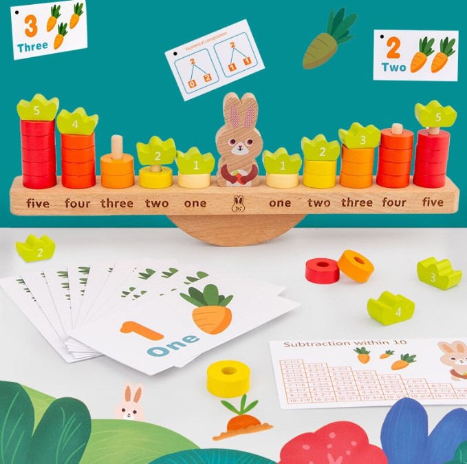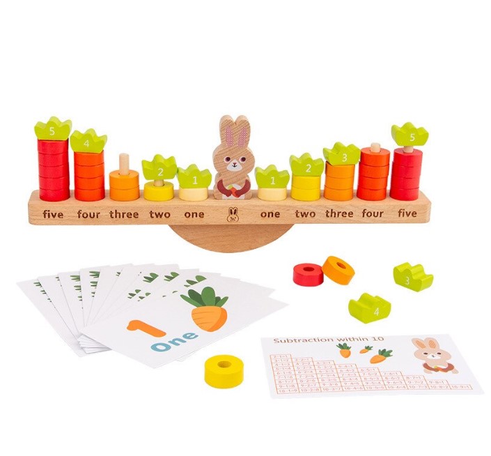 Un joc educativ din lemn, tematic și atractiv, care îmbină învățarea matematicii de bază cu joaca interactivă. Copiii învață prin acțiune concretă concepte abstracte precum echilibru, numărare, adunare și scădere.