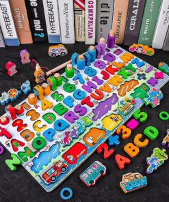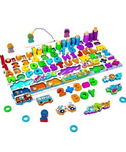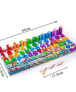 Un joc educativ 7 în 1, realizat din lemn masiv și pictat în culori vesele, care combină învățarea alfabetului, a cifrelor, a formelor, a animalelor și a vehiculelor, cu jocuri interactive și motrice. O placă de activități complexă, creată pentru a dezvolta abilitățile esențiale ale copiilor prin joacă.
