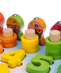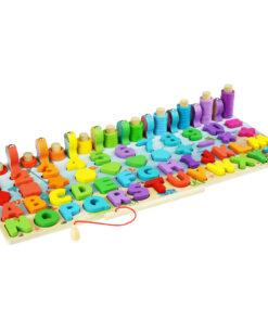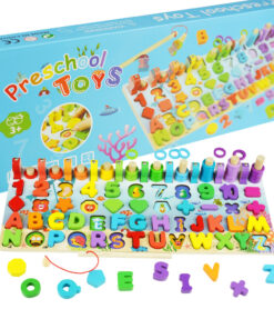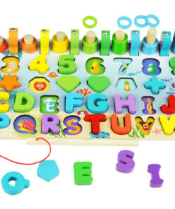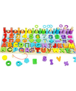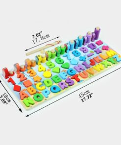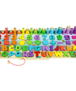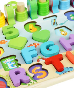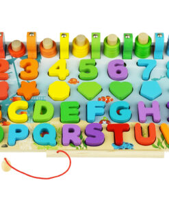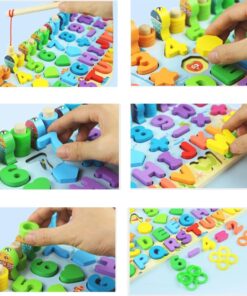 Joc Montessori 8 in 1, cu forme geometrice, sortator, pescuit, cifre si semne aritmetice, alfabet, logaritmi