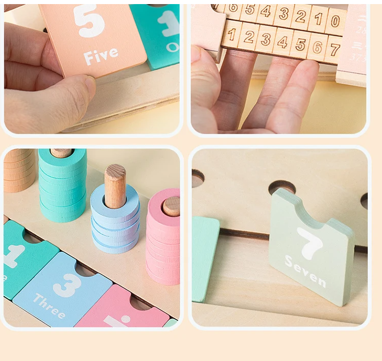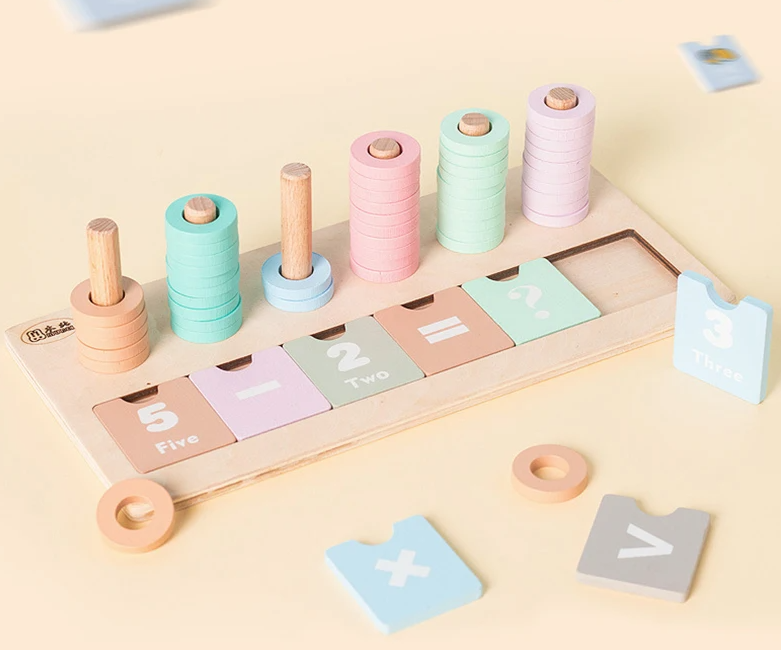 - Jocul contine si semnele aritmetice ” „, „-” si „=”, pentru a-i invata pe cei mici sa efectueze operatii aritmetice de baza.