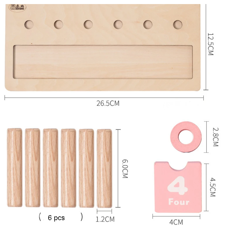 - Cu ajutorul acestui joc copiii vor numara inelele colorate si le vor aseza pe coloanele din dreptul cifrelor, in numar corespunzator, invatand astfel succesiunea cifrelor.