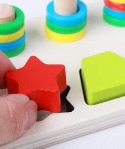 Puzzle-ul educativ incastru multifunctional de asociere si sortare, din lemn, cu 3 functii: