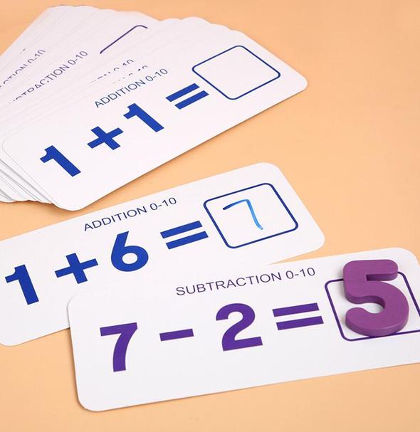 • Include cartonase cu adunare si scadere, cu marker si panza pentru a scrie si a sterge.