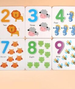• Include 10 cartonase cu numere, cu ilustratii si cifre din lemn.