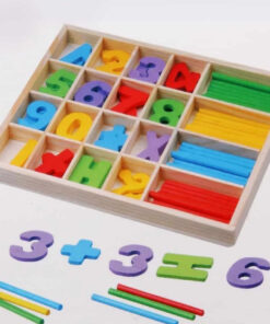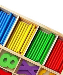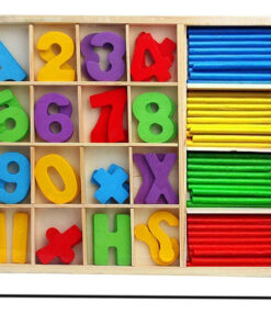 Jucarie Montessori din lemn din categoria Matematica. Cutia cu cifre si betisoare este o jucarie educativa perfecta pentru a pune bazele operatiilor aritmetice simple.