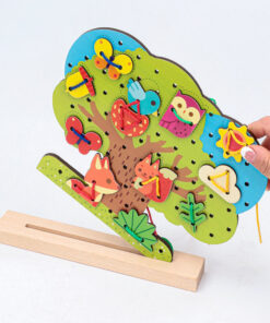 Copacul din lemn de snuruit este o jucarie cu siret, ce contine mici piese cu forme de frunze si animalute viu colorate. Toate aceste piese pot fi adaugate in copacel cu ajutorul snuruletului special.