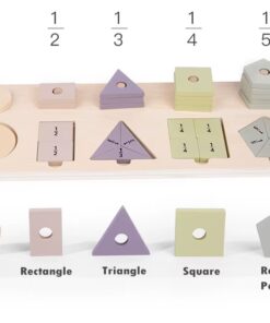 Un joc educativ inspirat din pedagogia Montessori, conceput pentru a le oferi copiilor o înțelegere intuitivă și practică a formelor geometrice și a fracțiilor simple. Ideal pentru copiii de la 3 ani în sus, acest material didactic îi ajută să își dezvolte gândirea logică, coordonarea mână-ochi și noțiunile de matematică timpurie.
